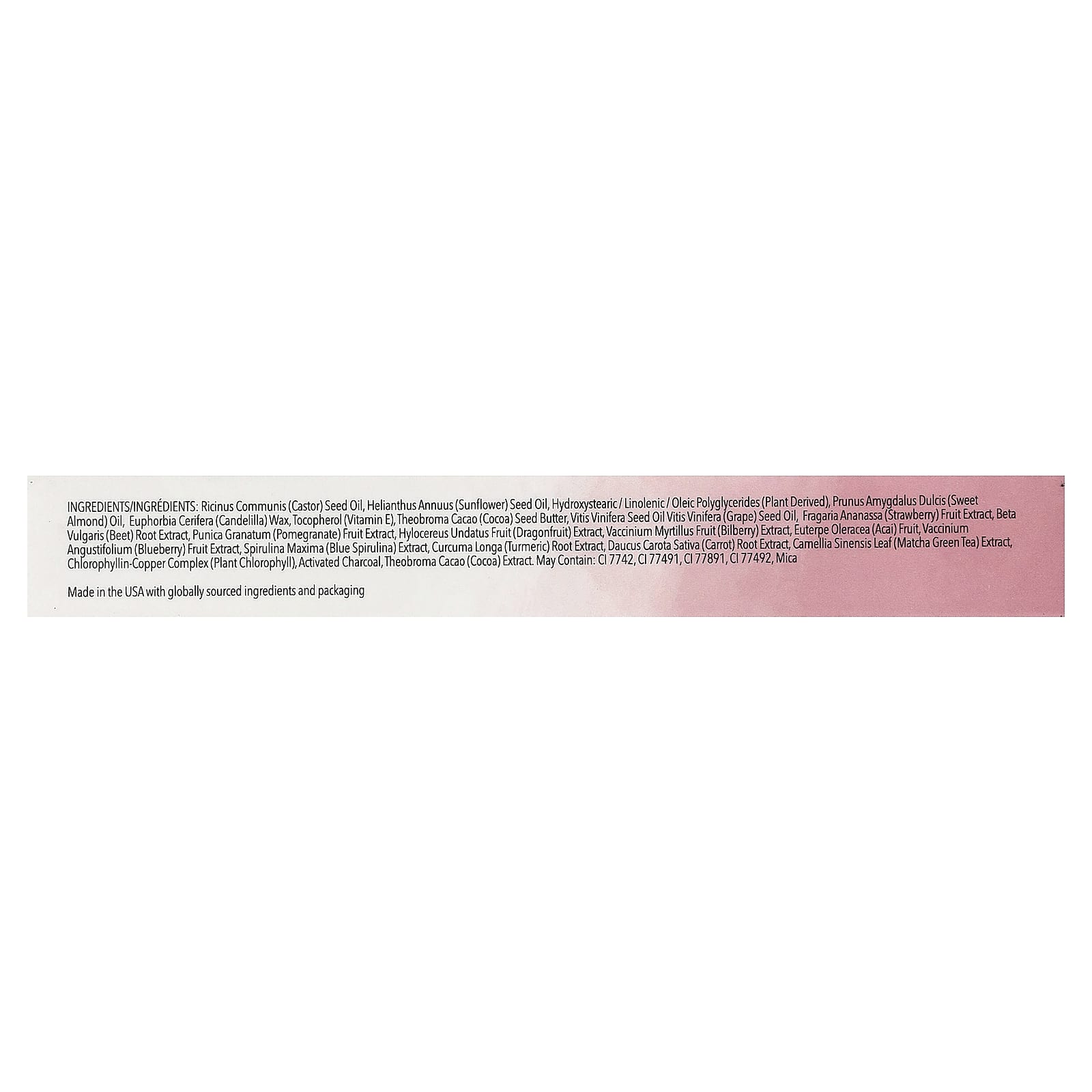 Подсолнечный витамин Е, может содержать все или некоторые из следующих веществ: Punica granatum (гранат), красное вино (вино), плоды вишни (Prunus serotina), плоды клюквы (Vaccinium macrocarpon), плоды ежевики (Rubus fruticosus), плоды малины (Rubus idaeus), плоды персика (Prunus persica), томат, какао-бобы (Theobroma cacao), плоды сливы (Prunus domestica), голубики, опухоль, микронизированный черный чай и кожица черники, гранатовое масло, какао-масло, канделильский воск (Euphorbia cerifera), экстракт плодов Fragaria vesca (натуральный клубничный ароматизатор).