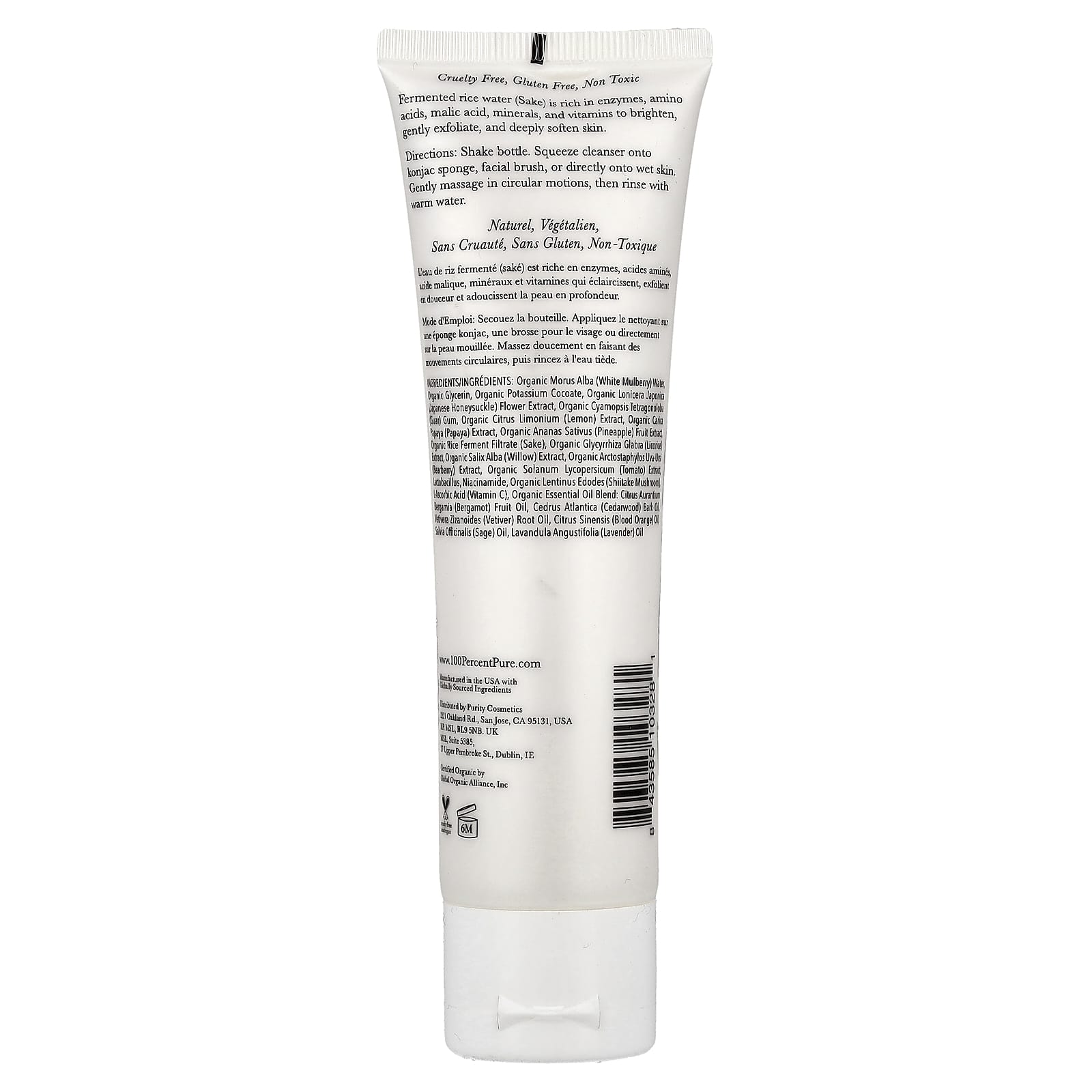 Органическая вода из белой шелковицы (Morus alba), органический глицерин, органический кокоат калия, органический экстракт цветков жимолости японской (Lonicera japonica), органическая гуаровая камедь (Cyamopsis tetragonoloba), органический экстракт лимона (Citrus limonium), органический экстракт папайи (Carica), органический экстракт плодов ананаса (Ananas sativus), фильтрат органических рисовых ферментов (саке), органический экстракт солодки (Glycyrrhiza glabra), органический экстракт ивы (Salix alba), органический экстракт толокнянки обыкновенной (Arctostaphylos uva-ursi), органический экстракт томатов (Solanum lycopersicum), бактерии Lactobacillus, никотинамид, органический гриб шиитаке (Lentinus edodes), L-аскорбиновая кислота (витамин C), смесь органических эфирных масел: масло плодов бергамота (Citrus aurantium bengamia), масло из коры кедра (Cedrus atlantica), масло корня ветивера (vetivera zizanoides), масло красного апельсина (Citrus sinensis), масло шалфея (Salvia officinalis), лавандовое масло (Lavandula angustifolia).