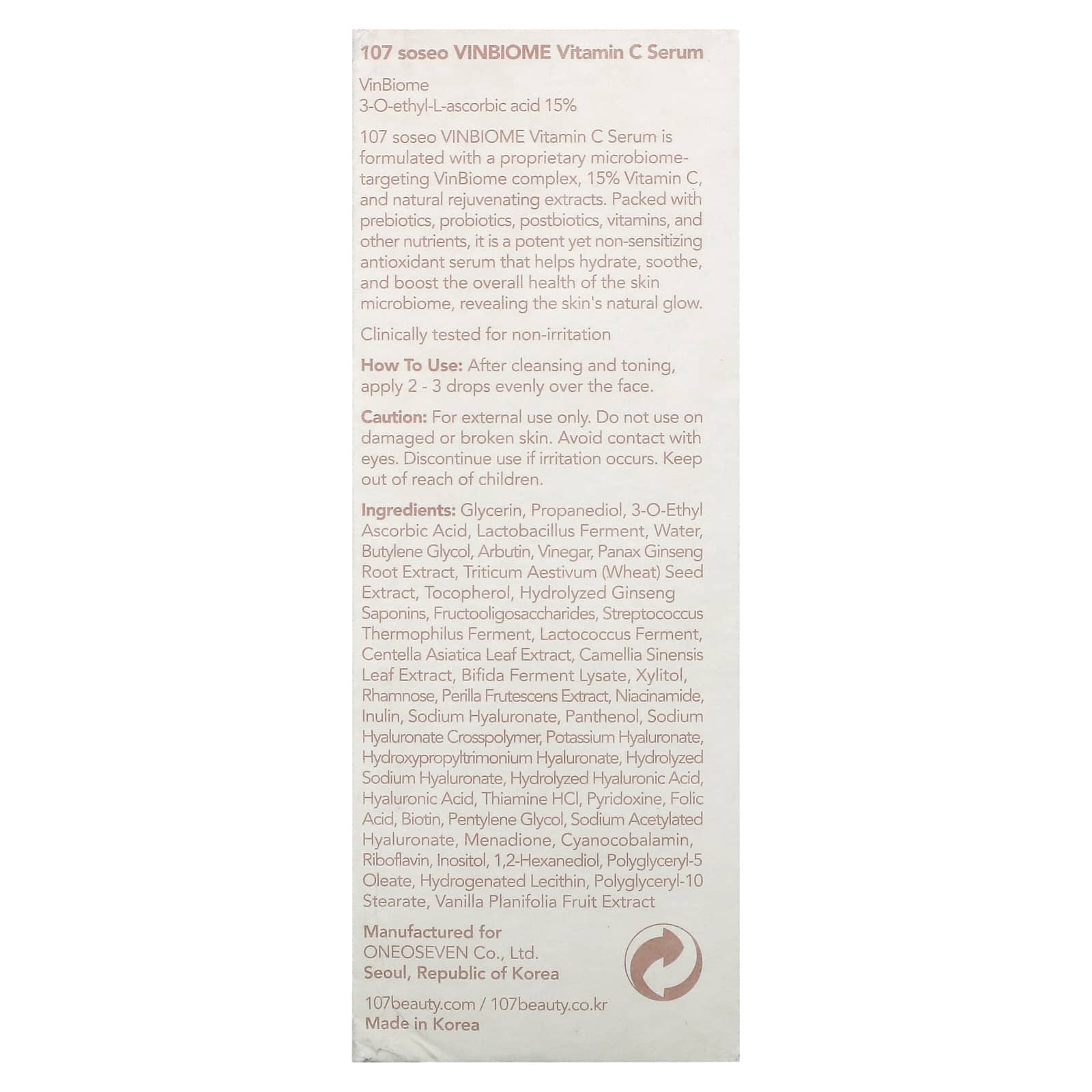 Сыворотка с витамином C содержит запатентованный комплекс VinBiome, нацеленный на микробиом, 15% витамина C и натуральные омолаживающие экстракты. Эта мощная, но несенсибилизирующая антиоксидантная сыворотка, богатая пребиотиками, пробиотиками, постбиотиками, витаминами и другими питательными веществами, помогает увлажнить, успокоить и улучшить общее состояние микробиома кожи, придавая коже естественное сияние.