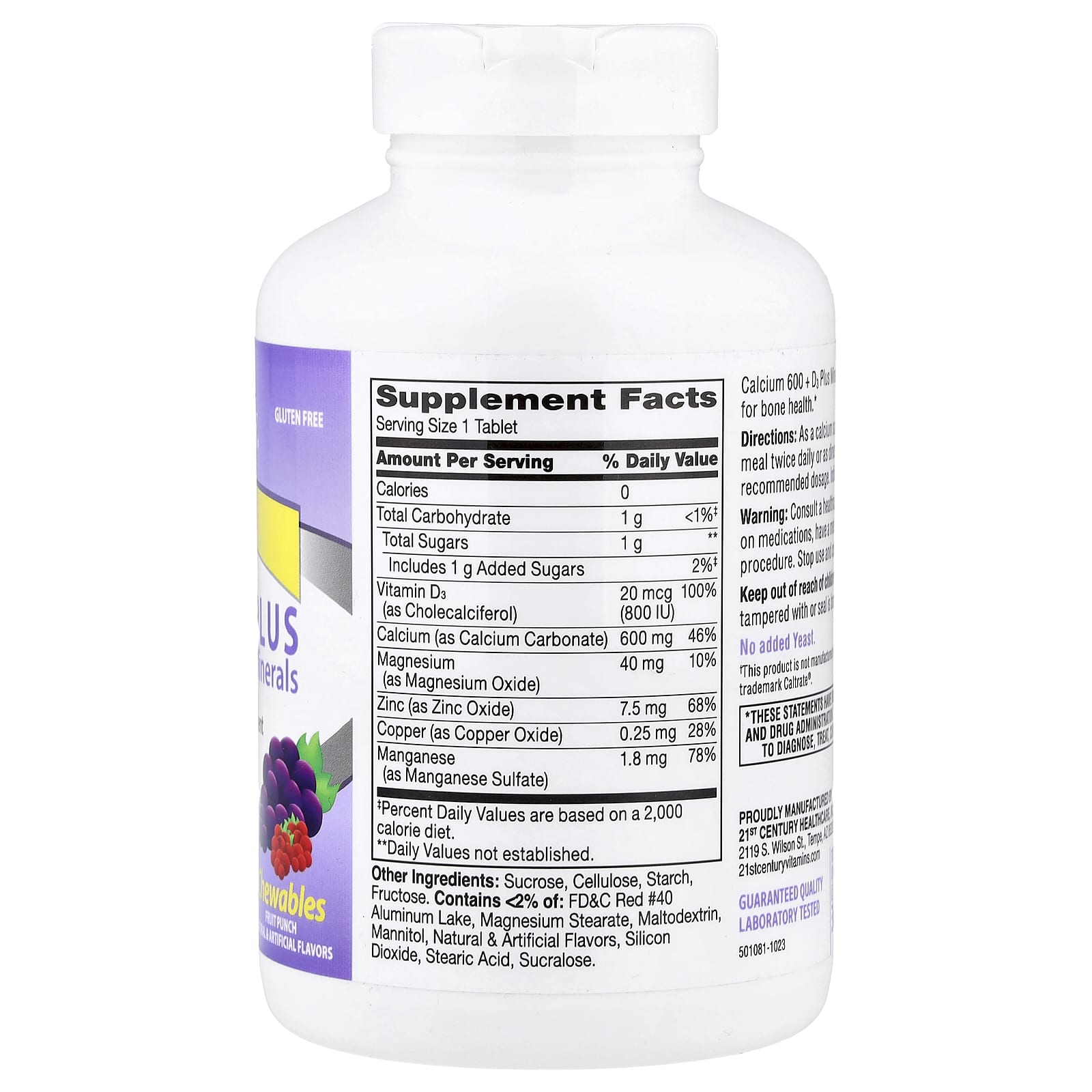 Кальций 600 + D3 Plus Minerals сочетает в себе незаменимые питательные вещества, важные для здоровья костей.