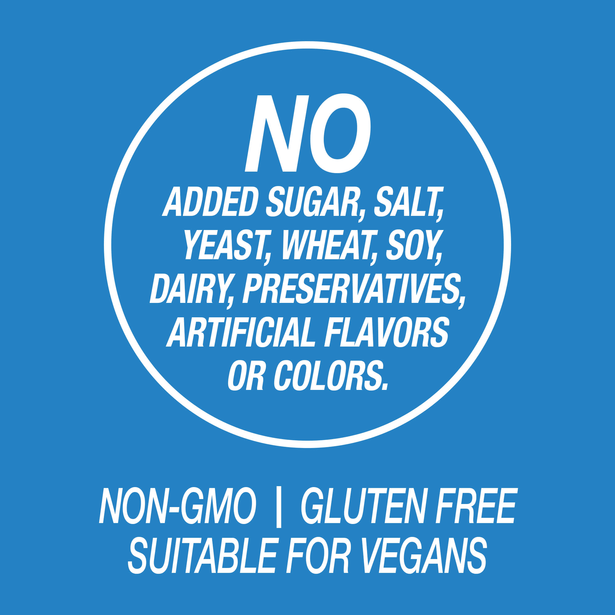 Не содержит добавленного сахара, соли, дрожжей, пшеница, сои, молочные продукты, консервантов, искусственных красителей и ароматизаторов.