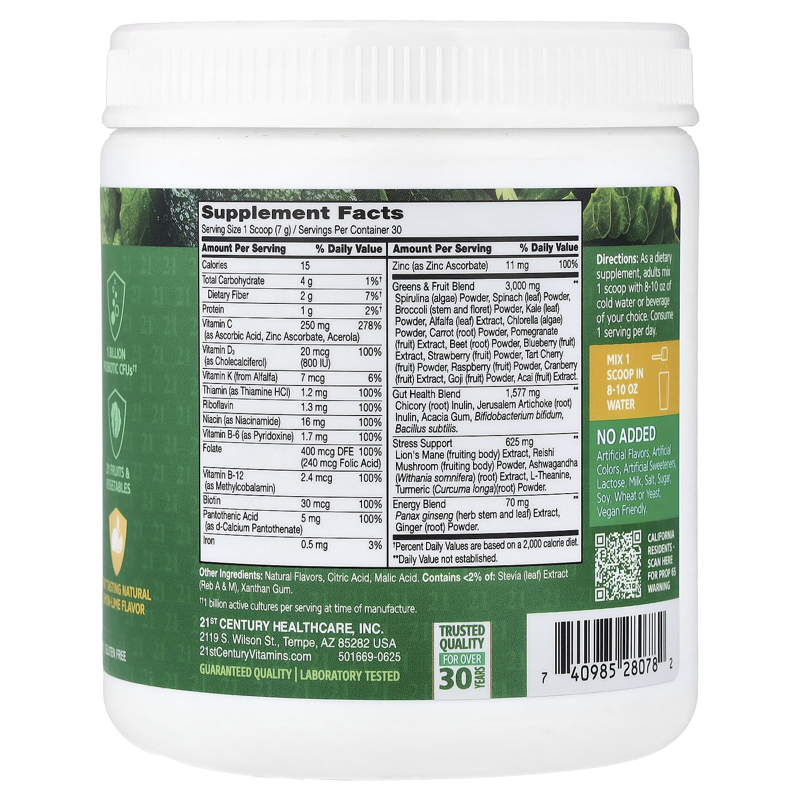 21 порошок из суперфудов зелениST Century® — это богатая питательными веществами смесь зелени, фруктов, овощей и растительных компонентов, предназначенная для поддержки естественных функций организма. Каждая порция содержит незаменимые питательные вещества, которые поддерживают здоровье кишечника, энергию, иммунную функцию, способность справляться со стрессом и естественную детоксикацию.