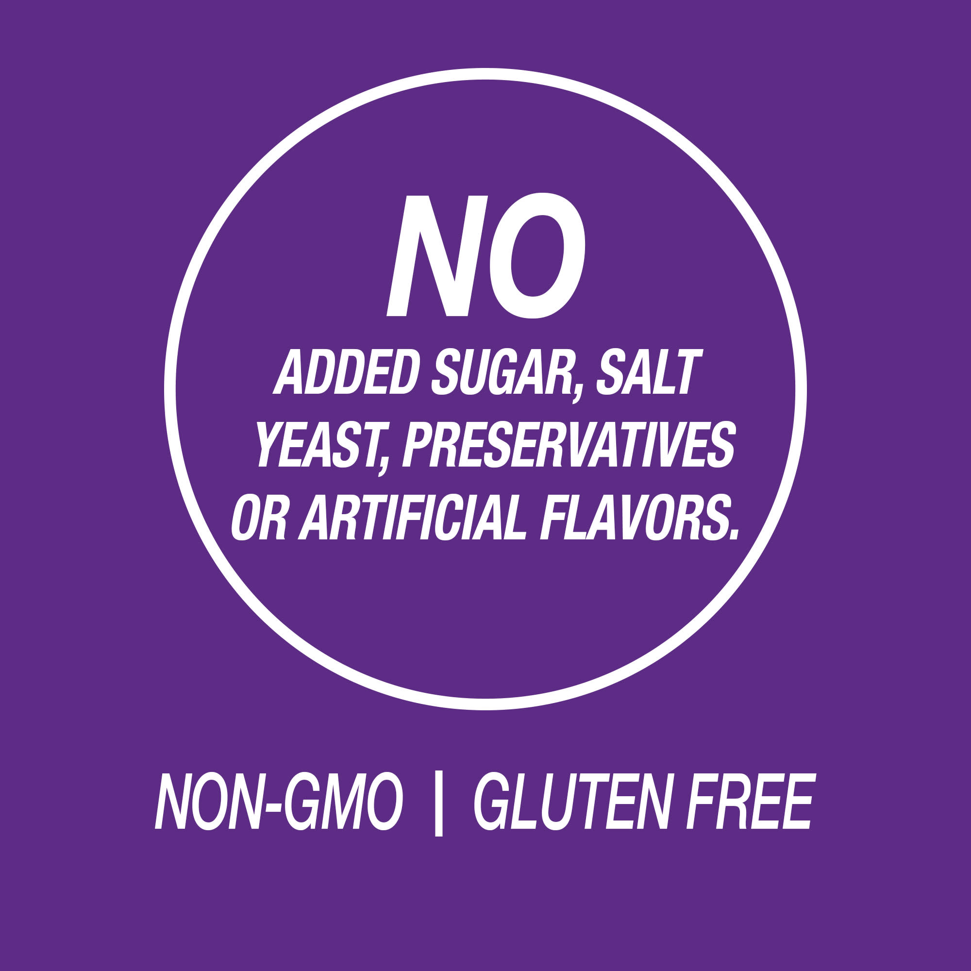 Без добавленного сахара, соли, дрожжей, консервантов, искусственных ароматизаторов.