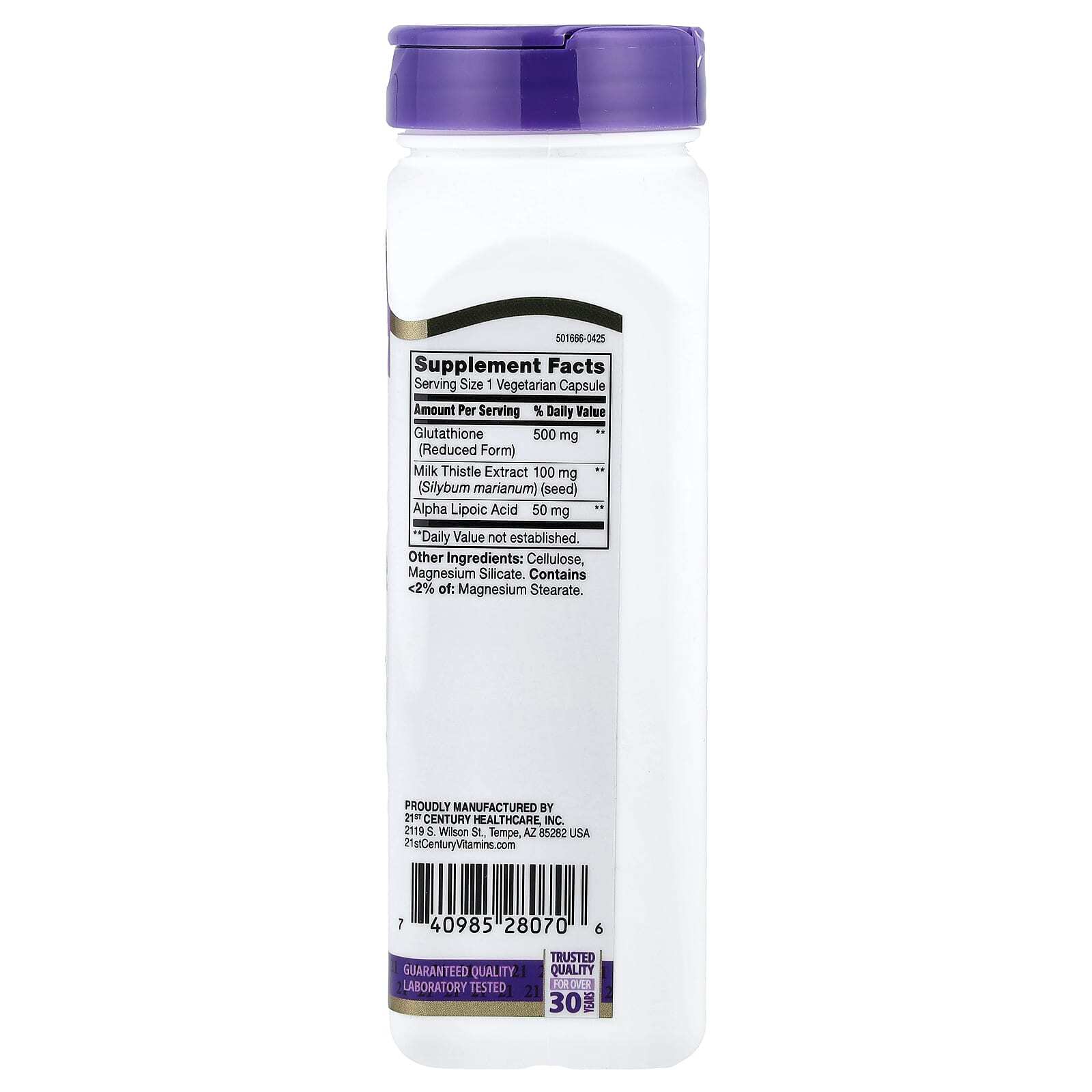 Глутатион, мощный трипептид, естественным образом вырабатываемый в организме, в качестве основного антиоксиданта предлагает пользу для здоровья. Глутатион 21st Century® поддерживает детоксикацию на клеточном уровне, укрепляет иммунитет и помогает нейтрализовать вредные свободные радикалы. Экстракт расторопши и альфа-липоевая кислота добавлены в качестве дополнительных ингредиентов.