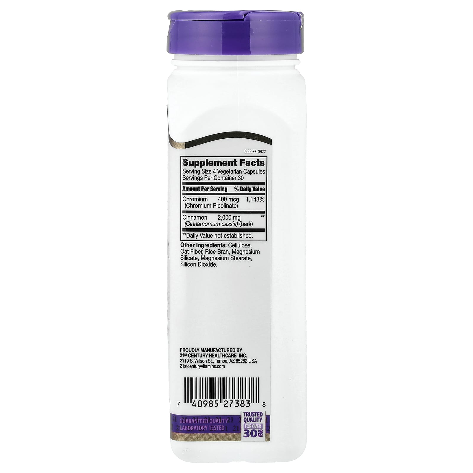 Корица и пиколинат хрома поддерживают нормальный обмен сахара и углеводов в сочетании со здоровым питанием и программой тренировок.