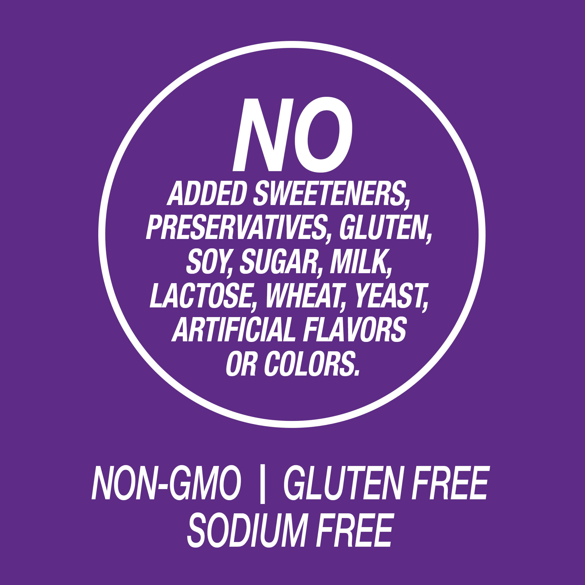 Без подсластителей, Консервантов, клейковина, соя, сахар, молока, лактоза, пшеница, дрожжи, искусственных ароматизаторов и красителей.