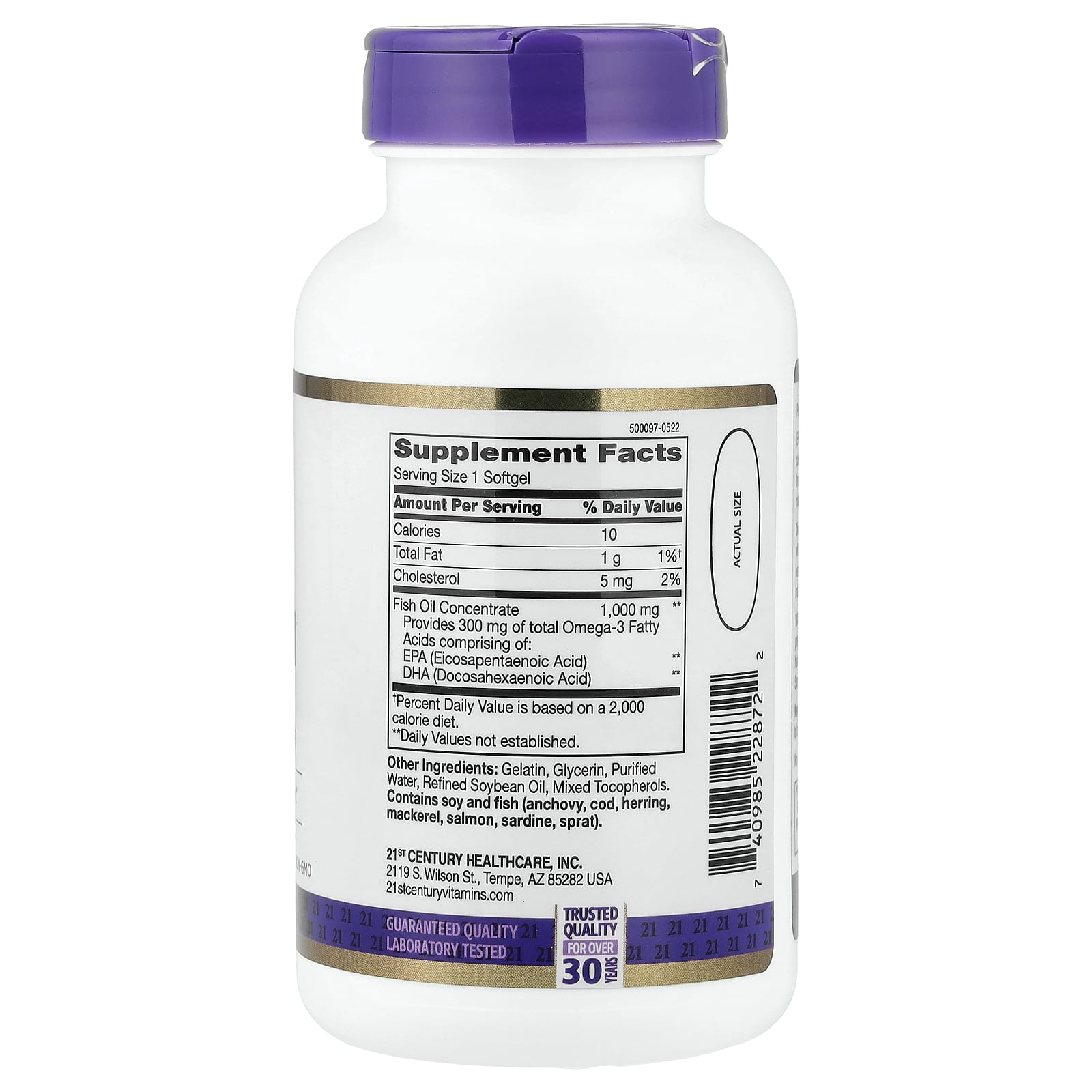 ЭПК и ДГК - важные омега-3 жирные кислоты, которые поддерживают здоровье сердечно-сосудистой системы, а также являются важными компонентами клеток организма.Рыбий жир 21st Century содержит высококачественный концентрат рыбьего жира, подвергающийся молекулярной дистилляции.