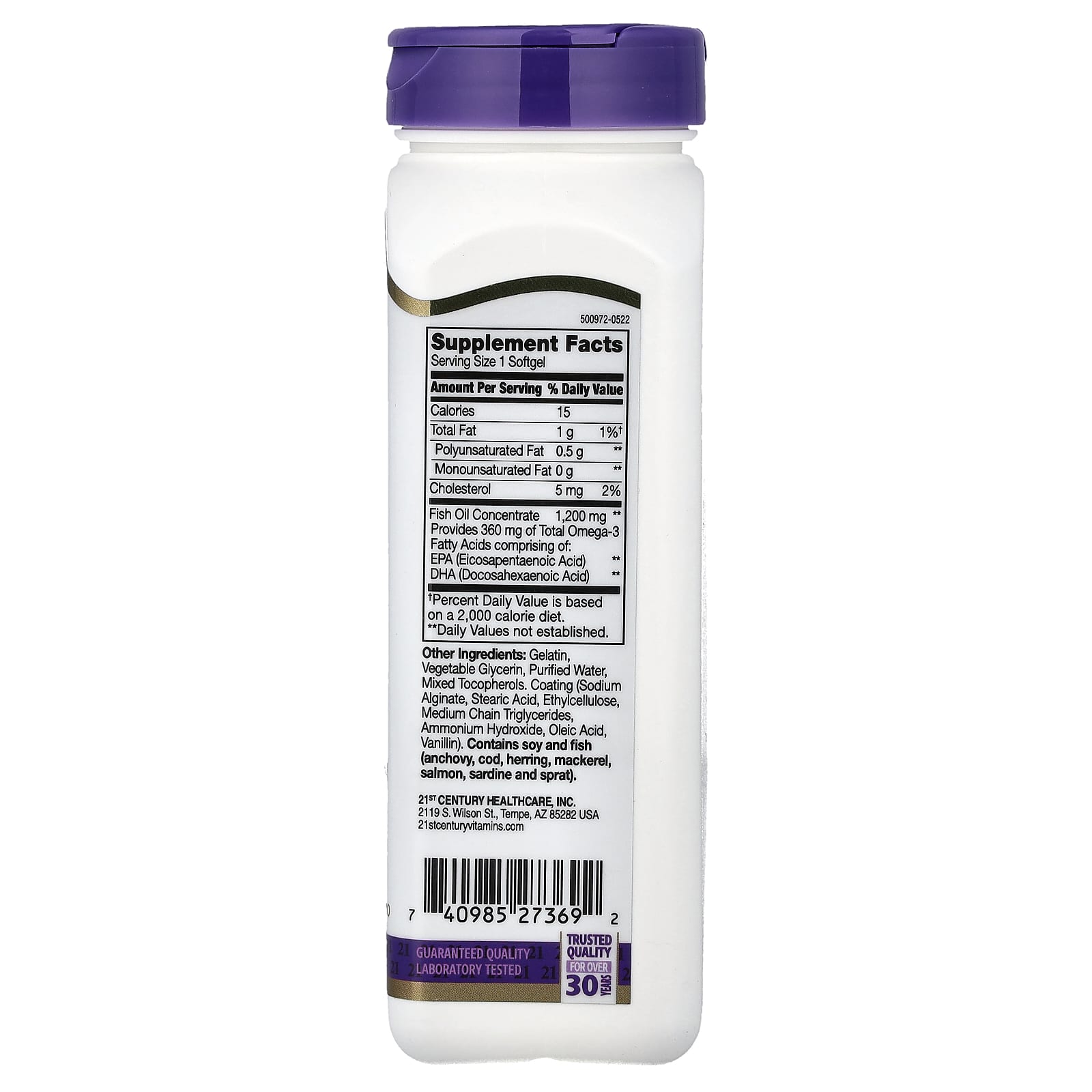 ЭПК и ДГК - важные омега-3 жирные кислоты, которые поддерживают здоровье сердечно-сосудистой системы, а также являются важными компонентами клеток организма.21 ст Рыбий жир Century содержит высококачественный концентрат рыбьего жира, прошедший молекулярной дистилляцию.