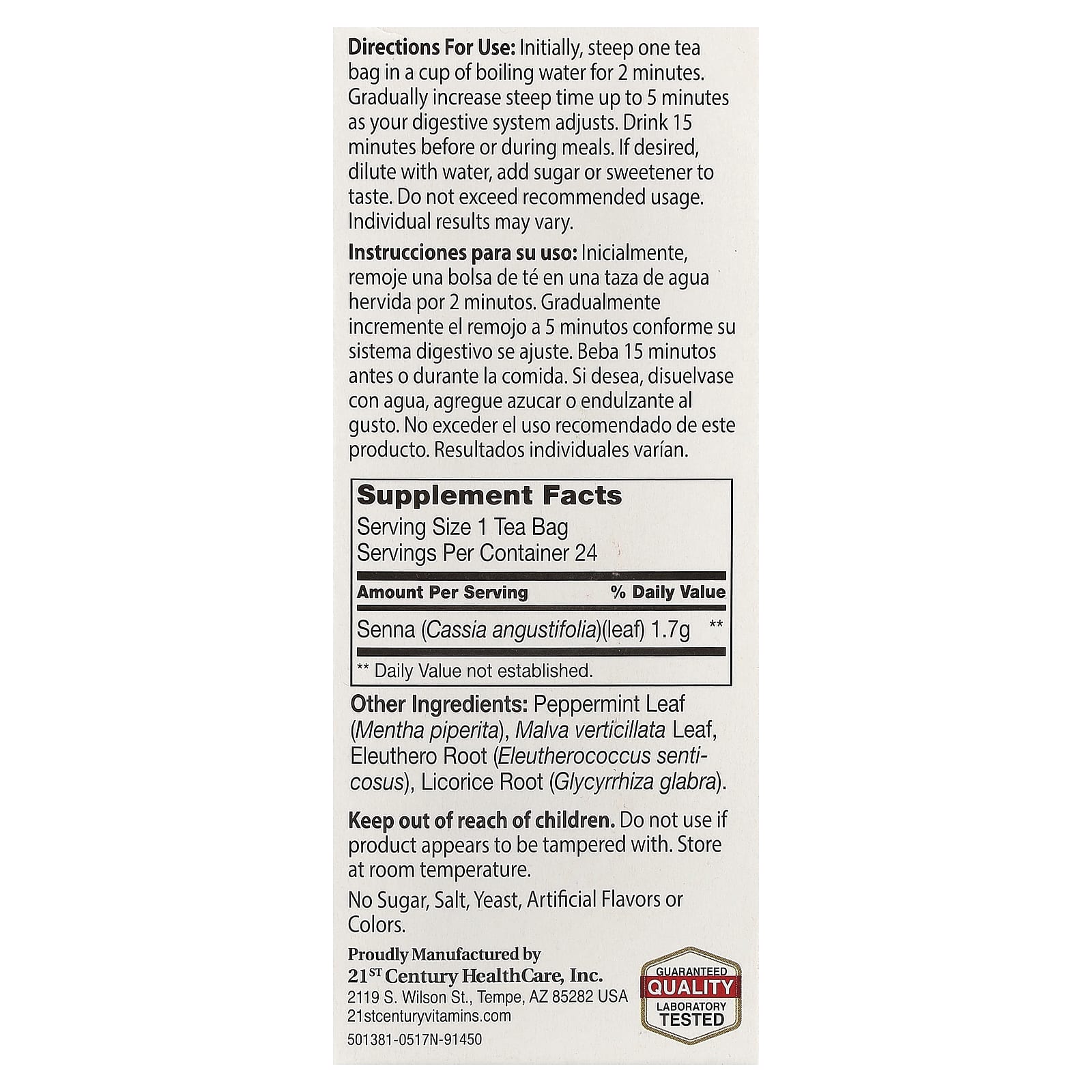 Примечание. Этот продукт содержит листья сенны.Внимательно прочтите рекомендации по применению и следуйте им.Не используйте, если у вас диарея, жидкий стул или боли в животе.Если у вас частая диарея, проконсультируйтесь с врачом.Перед применением в период кормления грудью, беременности, приема медикаментов или при наличии каких-либо заболеваний следует проконсультироваться с врачом.