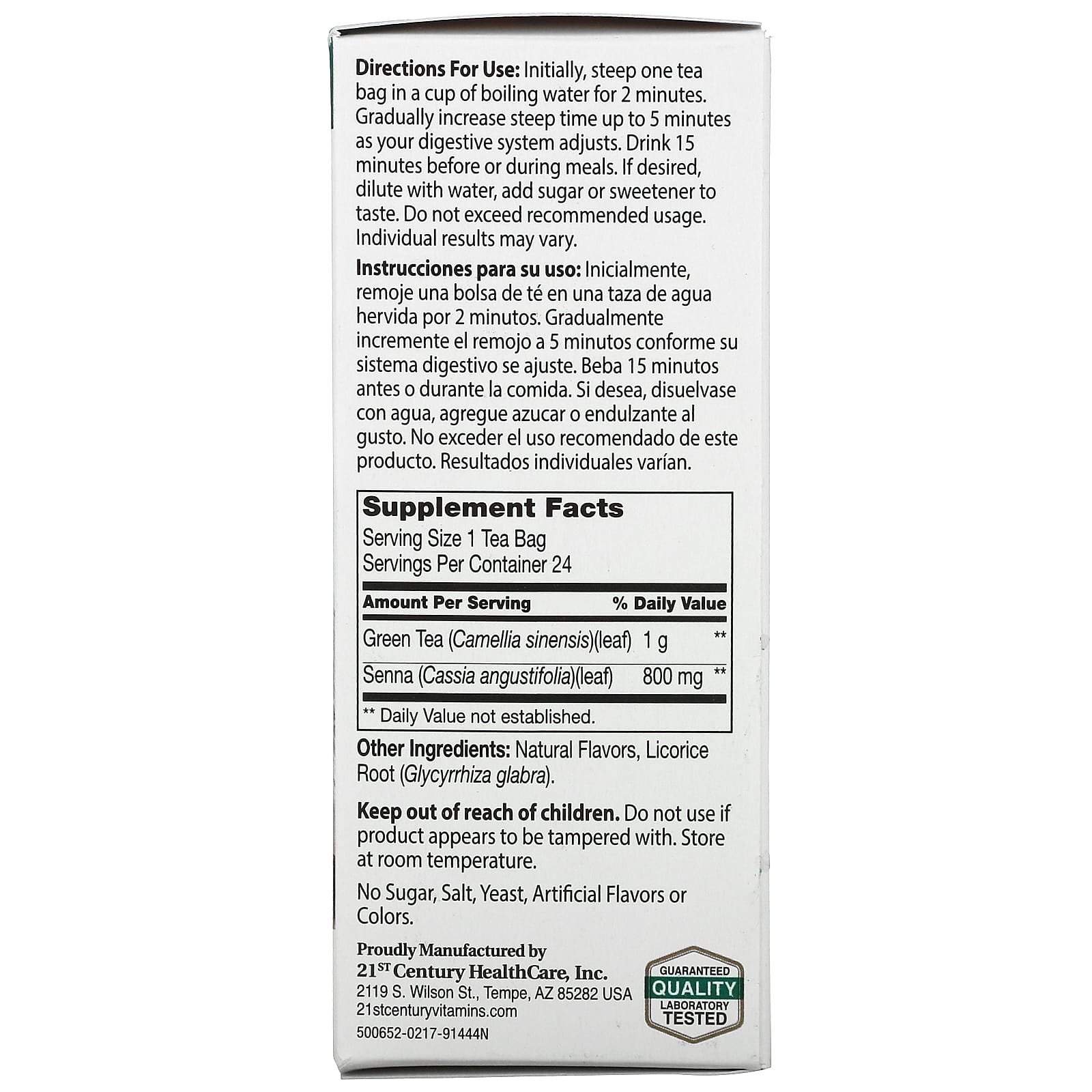 21st Century, травяной чай для похудения, зеленый чай, 24 чайных пакетика, 48 г (1,7 унции)