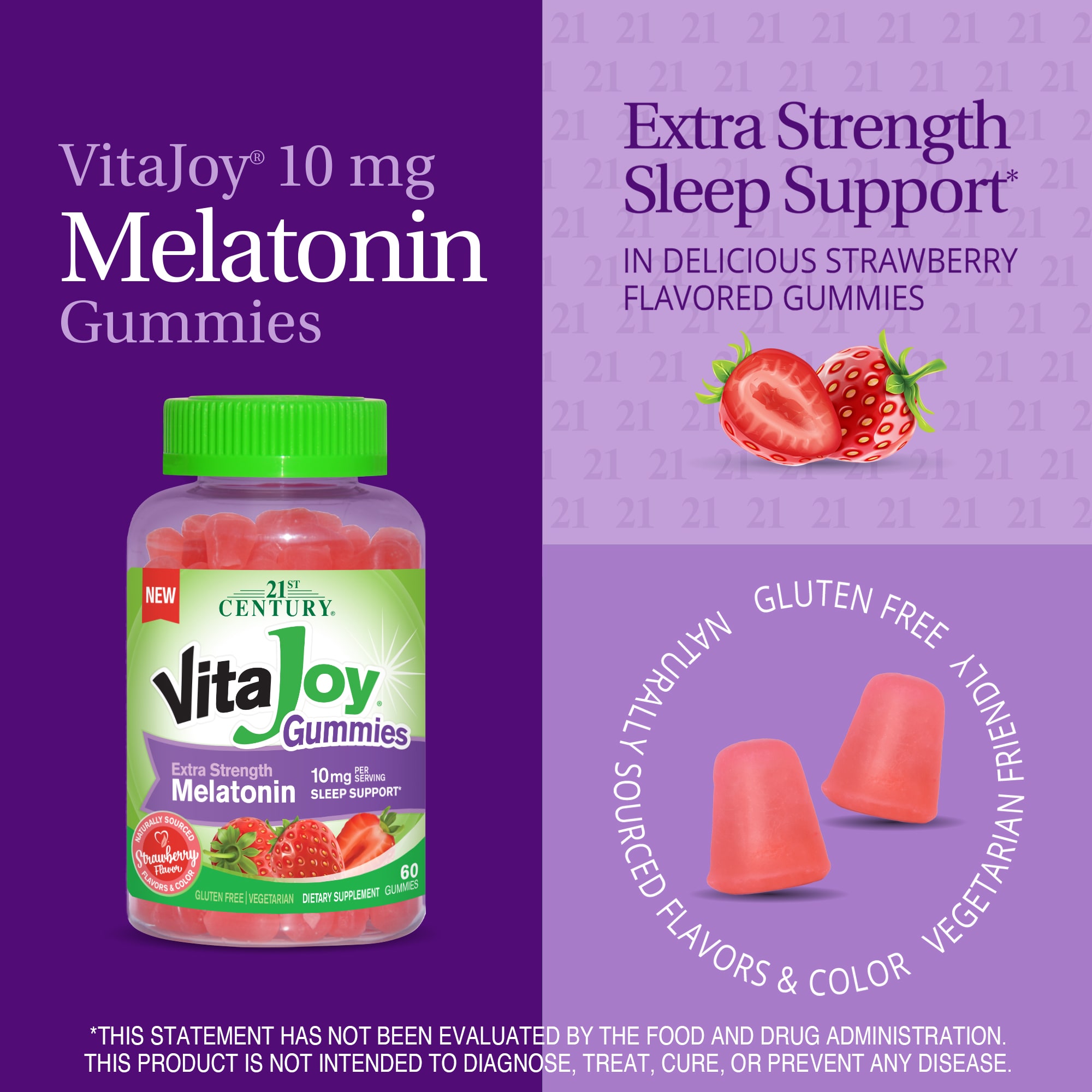 Жевательные таблетки с мелатонином 21st Century® VitaJoy® гармонично воздействуют на естественный цикл сна, способствуя расслаблению и сну. Эти жевательные таблетки с натуральным клубничным вкусом также обладают превосходным вкусом!