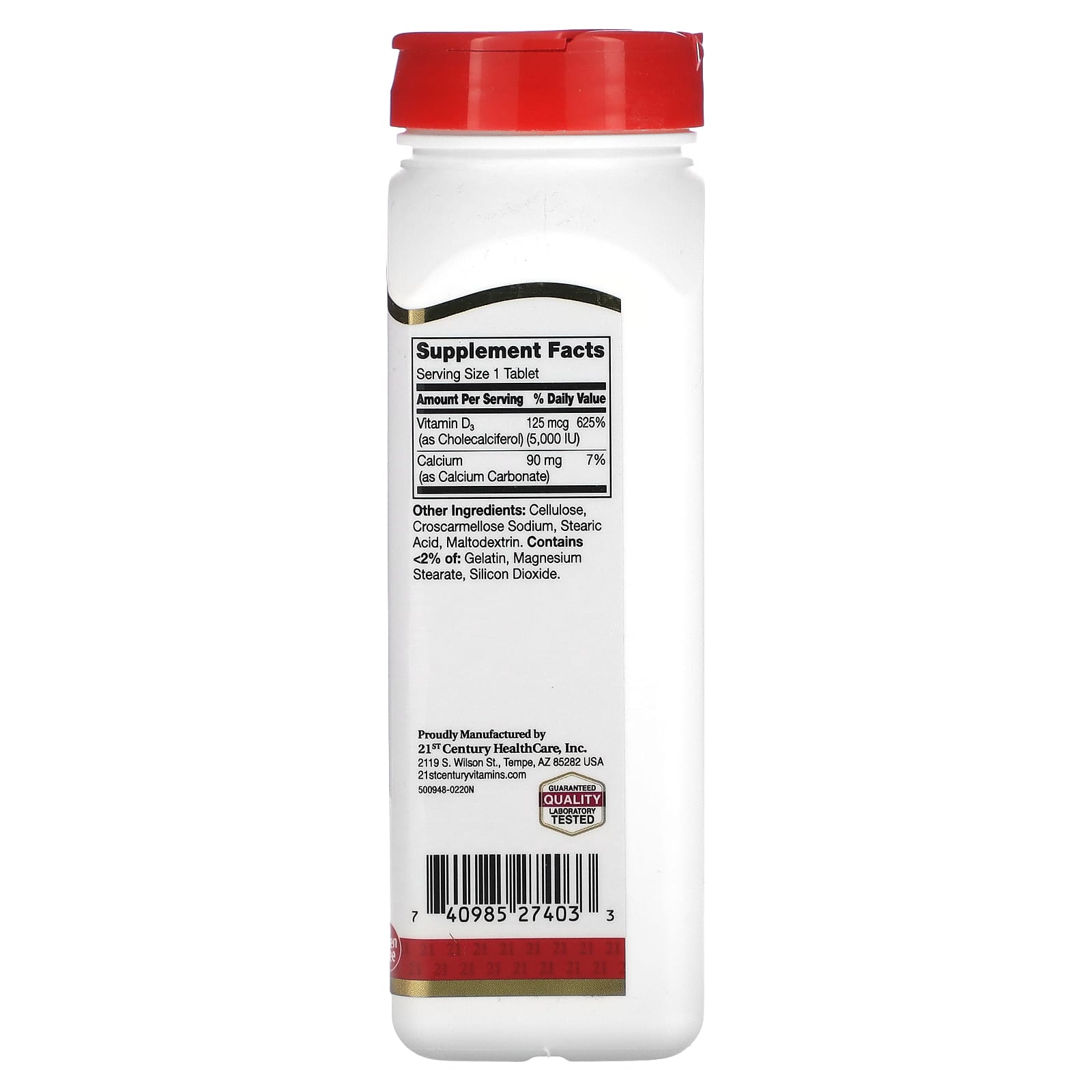 | Витамин D3 (в виде холекальциферола) | 125 мкг (5000 МЕ) | 625% |
