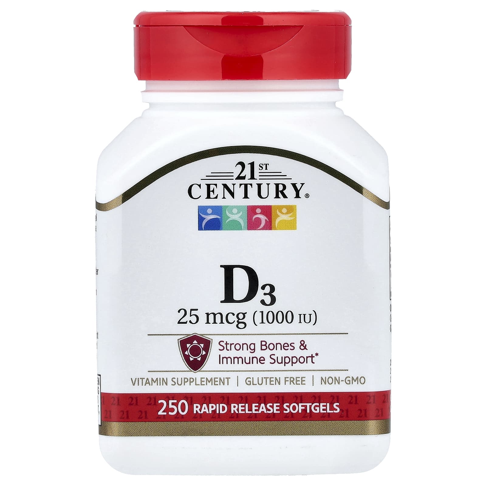 21st Century, Витамин D3, 25 мкг (1000 МЕ), 250 мягких таблеток с быстрым высвобождением