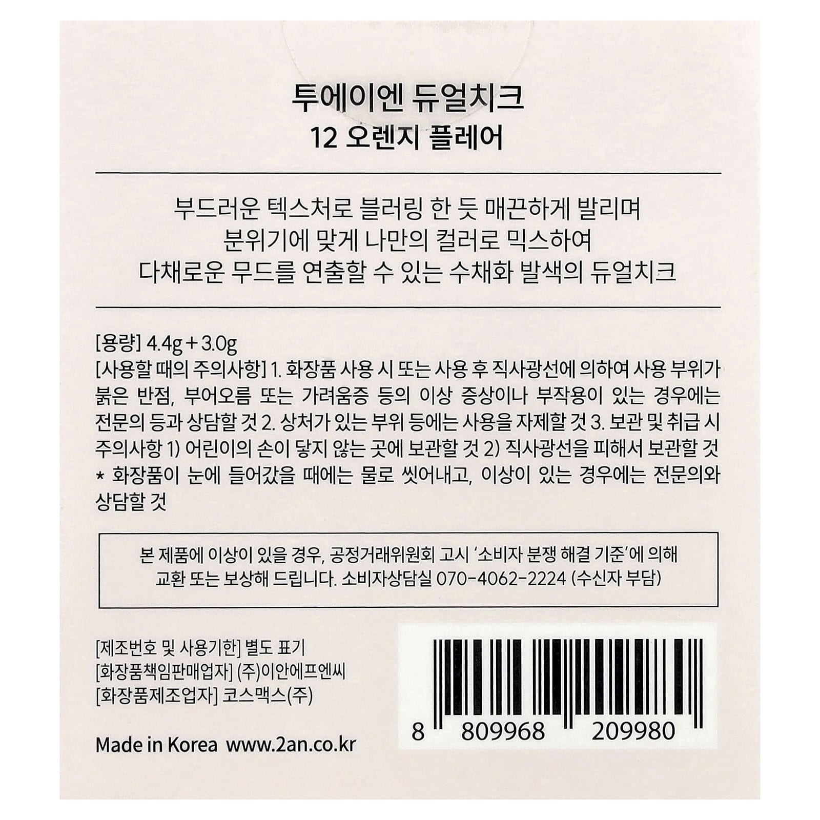 2aN, Dual Cheek, 12 апельсиновых хлопьев, 7,4 г