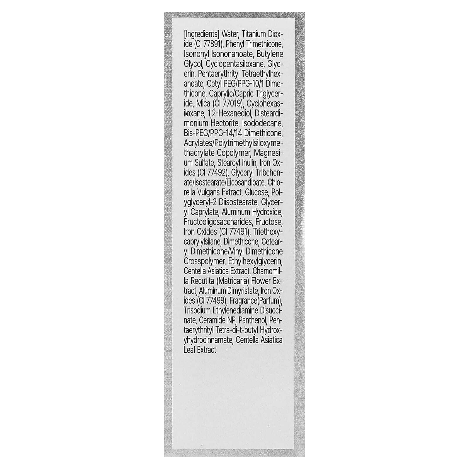 Вода, диоксид титана (CI 77891), фенилтриметикон, изононил изононаноат, бутиленгликоль, циклопентасилоксан, глицерин, пентаэритритил тетраэтилгексаноат, цетил ПЭГ/ППГ-10/1 диметикон, каприловый/каприновый триглицерид, слюда (CI 77019), циклогексасилоксан, 1,2-гександиол, дистеардимония гекторит, изододекан, бис-ПЭГ/ППГ-14/14 диметикон, акрилаты/политриметилсилоксиметакрилат сополимер, сульфат магния, стеароил инулин, оксиды железа (CI 77492), глицерил трибегенат/изостеарат/эйкозандиоат, экстракт хлореллы (Chlorella vulgaris), глюкоза, полиглицерил-2 диизостеарат, глицерил каприлат, гидроксид алюминия, фруктоолигосахариды, фруктоза, оксиды железа (CI 77491), триэтоксикаприлилсилан, диметикон, цетеарил диметикон/винил диметикон кроссполимер, этилгексилглицерин, экстракт готу колы (Centella asiatica), экстракт цветков ромашки лекарственной (Chamomilla recutita), димиристат алюминия, оксиды железа (CI 77499), отдушка (парфюмерная композиция), тринатрия этилендиамин дисукцинат, керамид NP, пантенол, пентаэритритил тетра-ди-трет-бутил гидроксигидроциннамат, экстракт листьев готу колы (Centella asiatica).