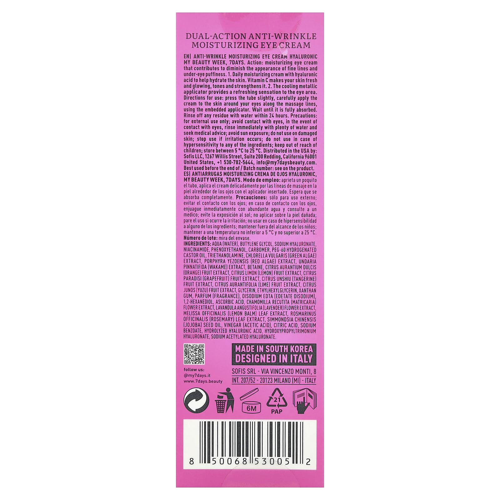 Действие: увлажняющий крем для области вокруг глаз, который способствует уменьшению мелких морщин и отеков под глазами.