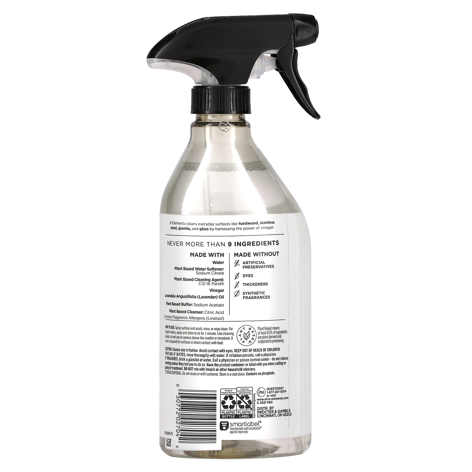 9 Elements очищают повседневные поверхности, такие как древесина твердых пород, нержавеющая сталь, гранит и стекло, используя силу уксуса.