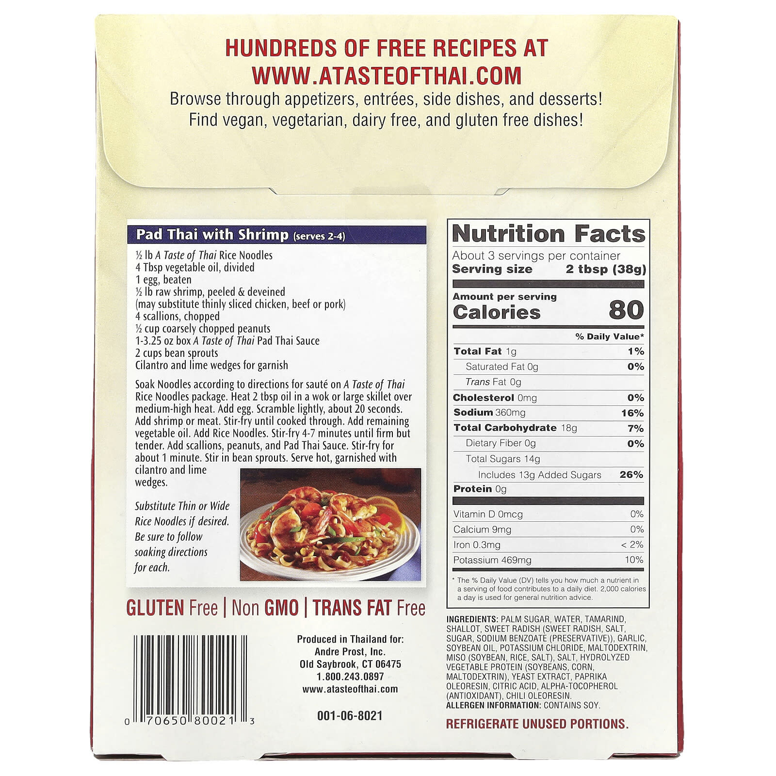 - Коробка 1–3,25 унции A Taste of Thai Pad Thai Sauce