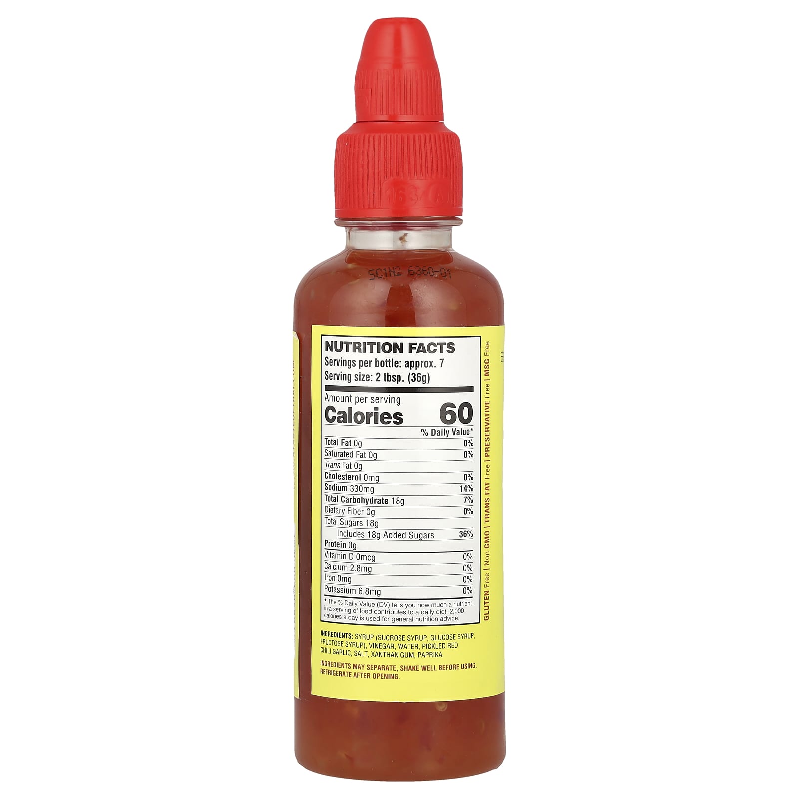 Сироп (сахарозный сироп, глюкозный сироп, фруктозный сироп), уксус, вода, маринованный красный перец чили, чеснок, соль, ксантановая камедь, паприки.