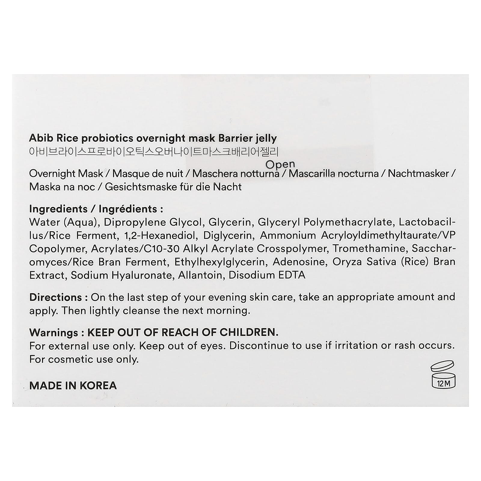 Вода (Aqua), дипропиленгликоль, глицерин, глицерил полиметакрилат, продукт ферментации бактерий Lactobacillus в присутствии риса, 1,2-гександиол, диглицерин, аммоний акрилоилдиметилтаурат/ВП сополимер, акрилат/c10-30 алкил акрилат кроссполимер, трометамин, продукт ферментации рисовых отрубей с сахаромицетами, этилгексилглицерин, аденозин, экстракт рисовых отрубей (Oryza sativa), гиалуронат натрия, аллантоин, двунатриевая ЭДТК.