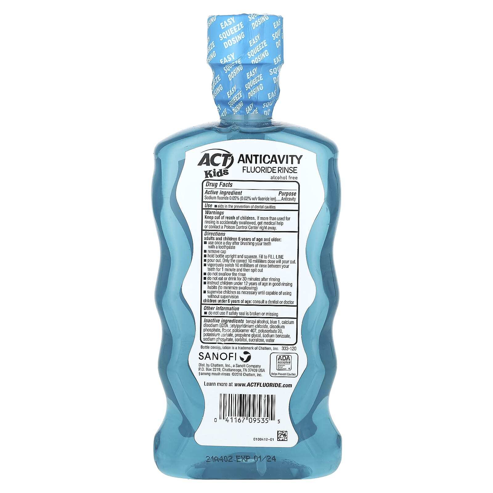 | Вспомогательные ингредиенты: бензиловый спирт, краситель синий 1, двунатриевая ЭДТК кальция, хлорид цетилпиридиния, динатрий фосфат, ароматизатор, полоксамер 407, полисорбат 20, сорбат калия, пропиленгликоль, бензоат натрия, фосфат натрия, сорбитол, сукралоза, вода. | |
