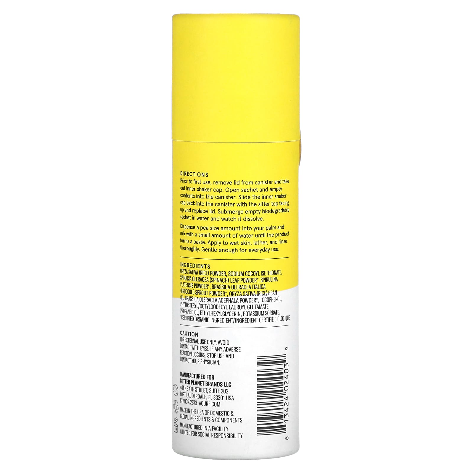 Активированный водой очищающий порошок с рисовым порошком, капустой и брокколи.