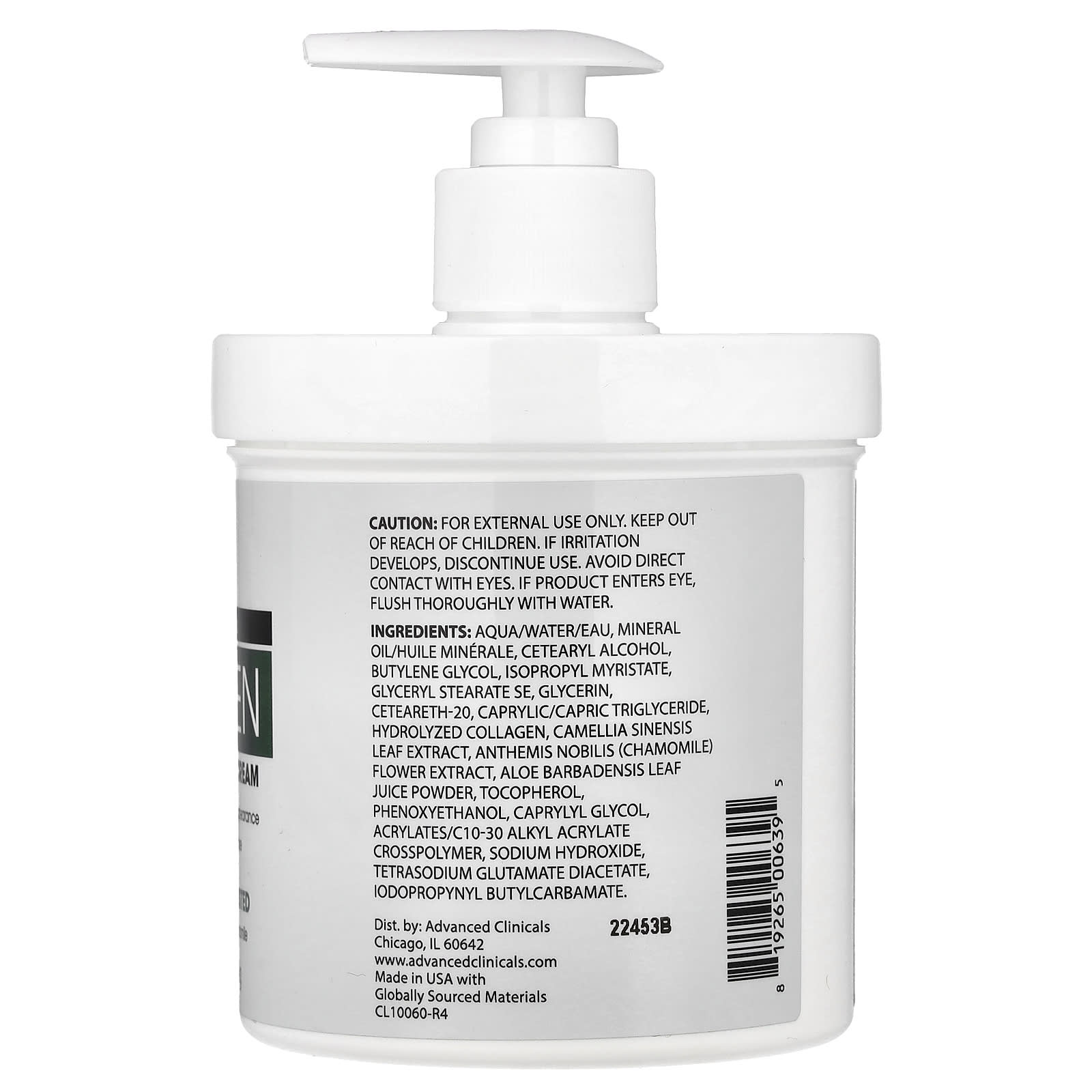 Вода, минеральное масло, Цетеариловый спирт, бутиленгликоль, изопропил миристат, глицерилстеарат SE, глицерин, цетеарет-20, каприловый/каприновый триглицерид, гидролизованный коллаген, Экстракт листьев камелии китайской, экстракт цветков ромашки (Anthemis nobilis), порошок из сока листьев алоэ вера (Aloe barbadensis), Токоферол, феноксиэтанол, каприлилгликоль, Акрилат/C10-30 Алкилакрилатный кроссполимер, гидроксид натрия, диацетат глутамата тетранатрия, йодопропинилбутилкарбамат.
