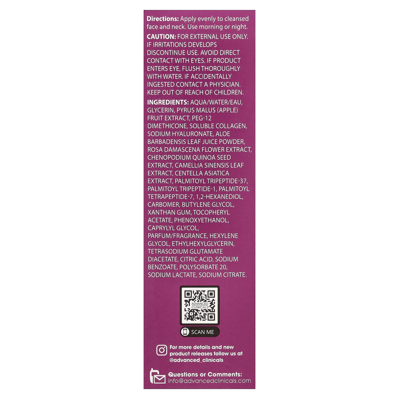 Вода, глицерин, экстракт яблока (Pyrus malus), ПЭГ-12 диметикон, растворимый коллаген, гиалуронат натрия, порошок из сока листьев алоэ вера (Aloe barbadensis), экстракт цветков дамасской розы (Rosa damascena), экстракт киноа (Chenopodium quinoa), экстракт листьев зелёного чая (Camellia sinensis), экстракт готу колы (Centella asiatica), пальмитоил трипептид-37, пальмитоил трипептид-1, пальмитоил тетрапептид-7, 1,2-гександиол, карбомер, бутиленгликоль, ксантановая камедь, токоферилацетат, феноксиэтанол, каприлилгликоль, парфюмерная композиция (отдушка), гексиленгликоль, этилгексилглицерин, диацетат глутамата тетранатрия, лимонная кислота, бензоат натрия, полисорбат 20, лактат натрия, цитрат натрия.