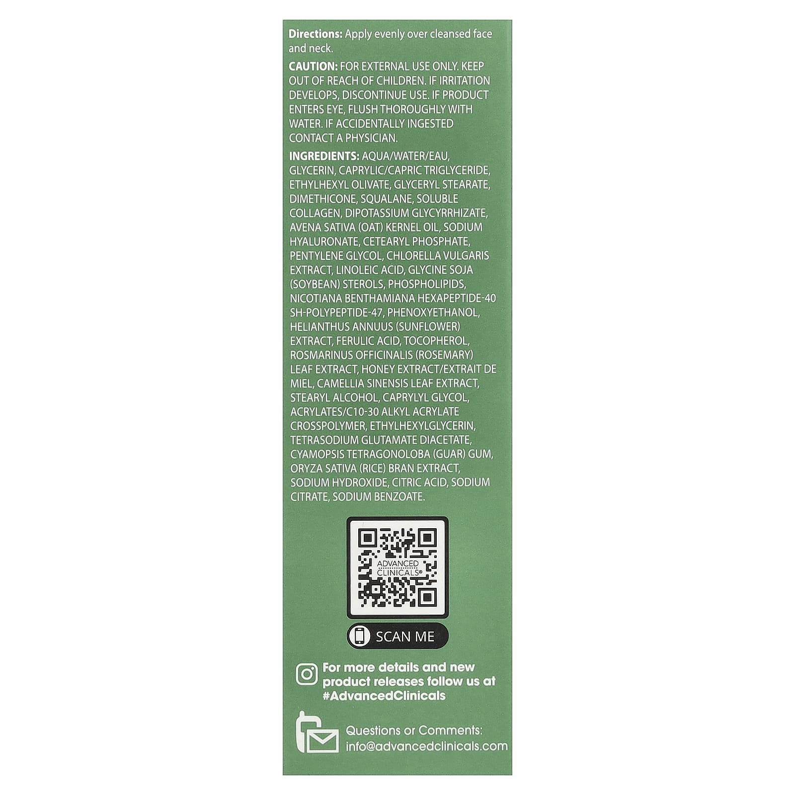 Вода, глицерин, каприловый/каприновый триглицерид, этилгексил оливат, глицерил стеарат, диметикон, сквалан, растворимый коллаген, дикалия глицирризат, масло из ядер овса (Avena sativa), гиалуронат натрия, цетеарил фосфат, пентилен гликоль, экстракт хлореллы (Chlorella vulgaris), линолевая кислота, стеролы сои (Glycine soja), фосфолипиды, гексапептид-40 sh-полипептид-47 табака Бентхама (Nicotiana benthamiana), феноксиэтанол, экстракт подсолнечника (Helianthus annuus), феруловая кислота, токоферол, экстракт листьев розмарина (Rosmarinus officinalis), экстракт мёда, экстракт листьев зелёного чая (Camellia sinensis), стеариловый спирт, каприлилгликоль, акрилат/c10-30 алкил акрилат кроссполимер, этилгексилглицерин, диацетат глутамата тетранатрия, гуаровая камедь (Cyamopsis tetragonoloba), экстракт рисовых отрубей (Oryza sativa), гидроксид натрия, лимонная кислота, цитрат натрия, бензоат натрия.