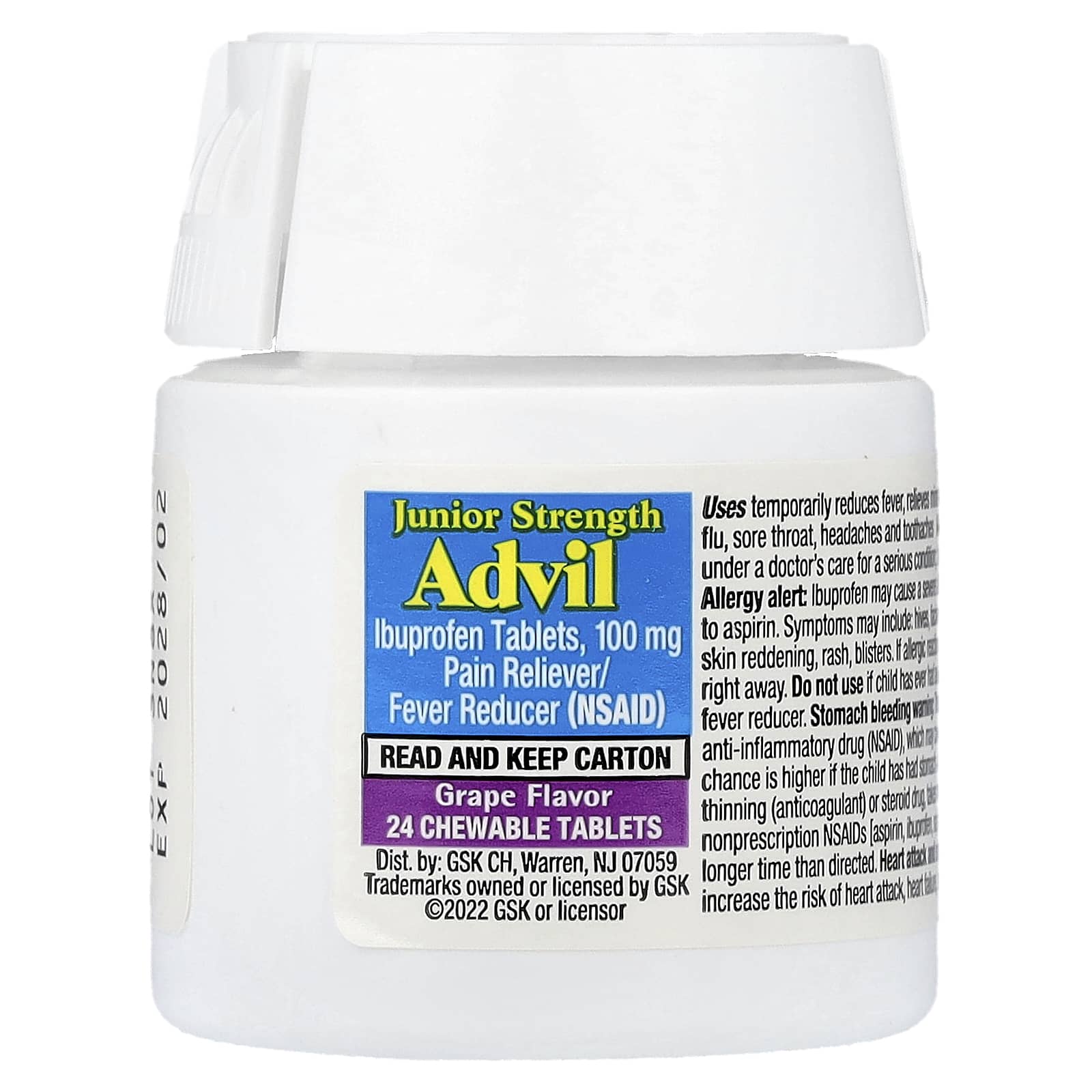 Способствуют вкусу вашего ребёнка от лихорадки и боли!лихорадка для детей Advil в жевательной таблетке со вкусом винограда.Кроме того, это удобно - не требуется стакан-дозатор или вода.Стойкость до 8 часов.Для детей от 2 до 11 лет.