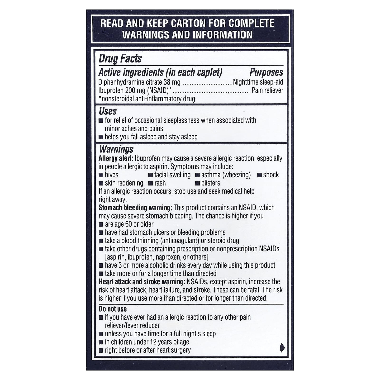 Предупреждение о сердечном приступе и инсульте. НПВП, кроме аспирина, увеличивают риск сердечного приступа, сердечной недостаточности и инсульта.Это может привести к летальному исходу.Риск выше, если вы используете больше, чем указано, или дольше, чем указано.