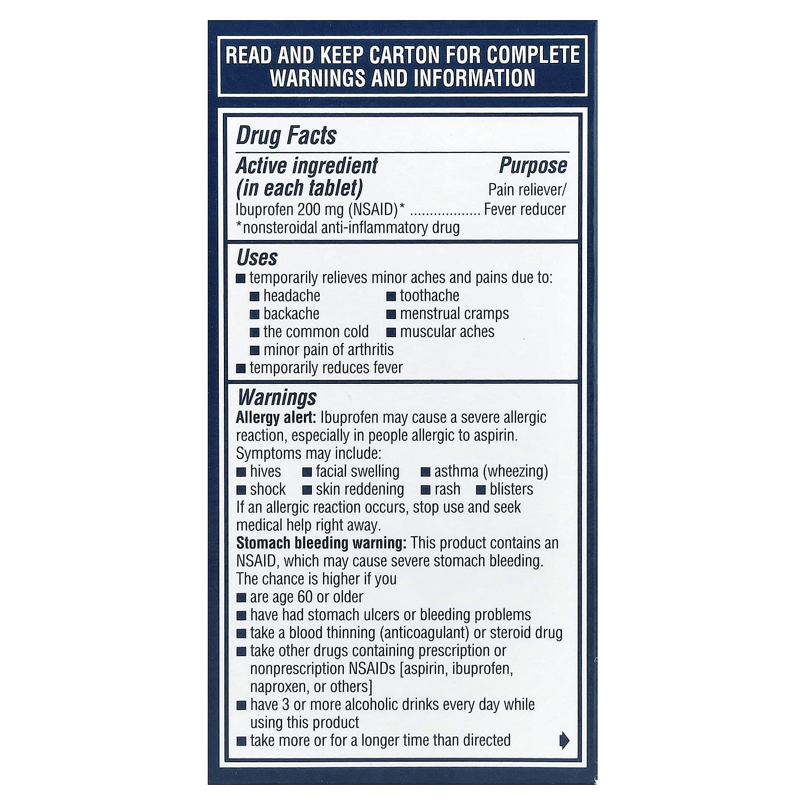 Предупреждение о сердечном приступе и инсульте.НПВП, кроме аспирина, увеличивают риск сердечного приступа, сердечной недостаточности и инсульта.Это может привести к летальному исходу.Риск выше, если вы используете больше, чем указано, или дольше, чем указано.