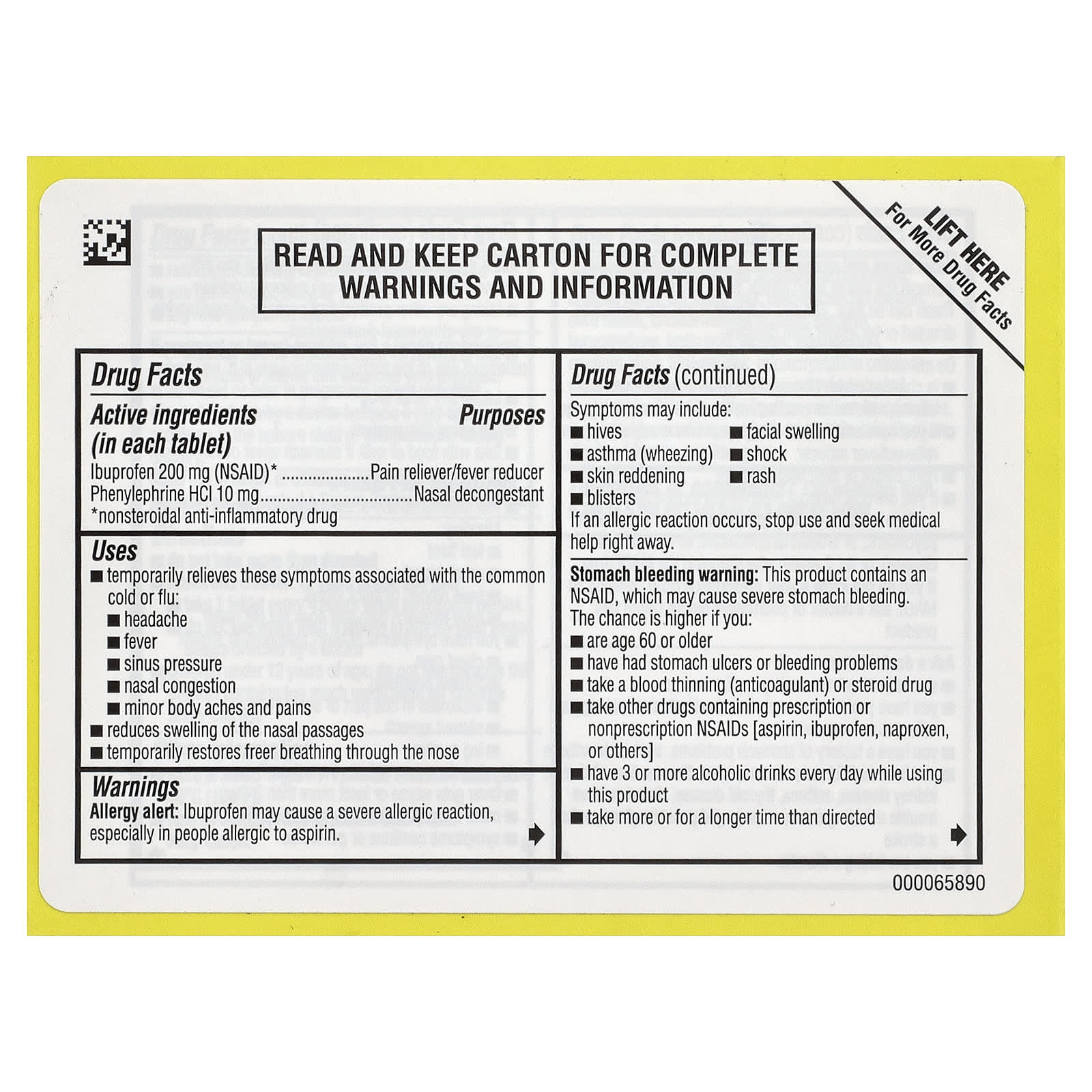 | Ибупрофен 200 мг (НПВП) * Фенилэфрина гидрохлорид 10 мг * нестероидный противовоспалительный препарат | Болеутоляющее / жаропонижающее средство Противозастойное средство для носа |