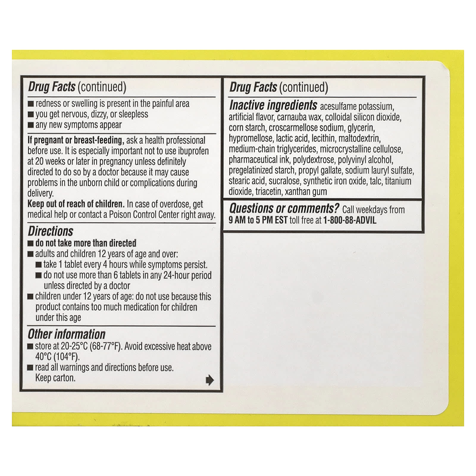- Ибупрофен, 200 мг обезболивающего и жаростойкого средства (NSAID)