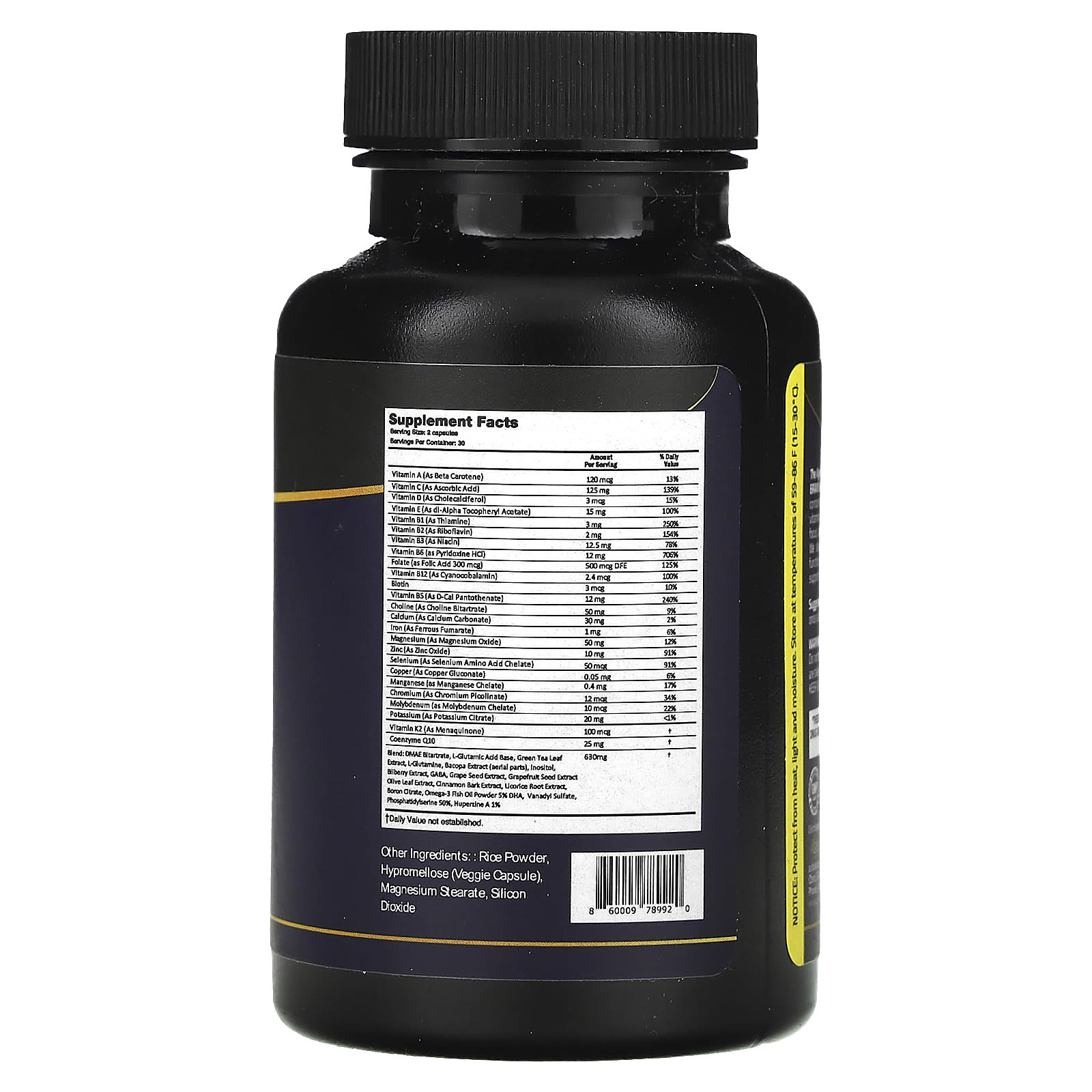 | Коктейль. Битартрат ДМАЭ, L-глутаминовая основа, экстракт листьев зеленого чая, L-глутамин, экстракт бакопы (надземные части), инозитол, экстракт черники, ГАМК, экстракт виноградных косточек, экстракт косточек грейпфрута, экстракт листьев оливкового дерева, экстракт коры корицы, корень солодки экстракт, цитрат бора, порошок из рыбьего жира с омега-3, 5% ДГК, ванадилсульфат, фосфатидилсерин 50%, гуперзин А 1% | 630 мг | † |