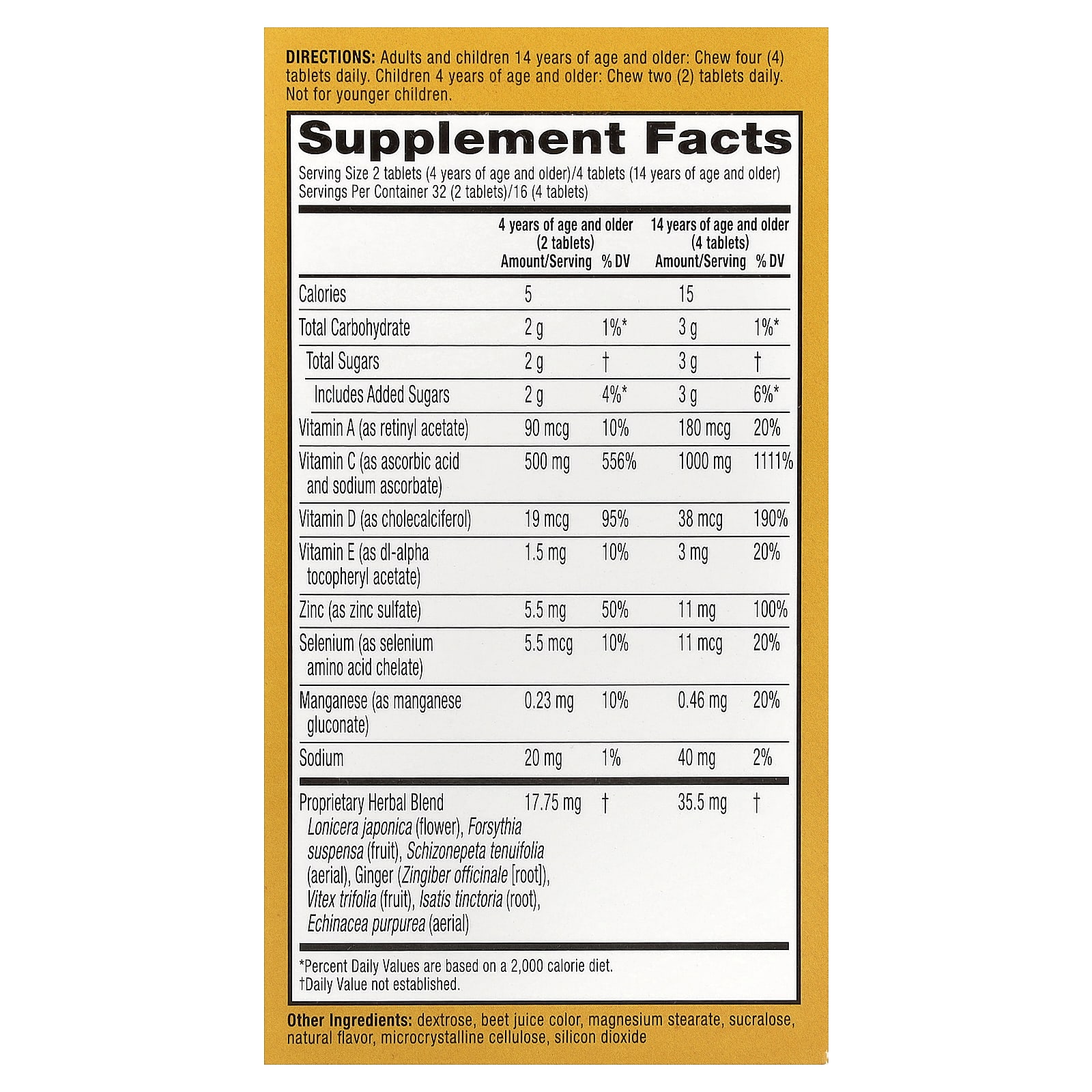 4 жевательные таблетки = 7 ингредиентов для поддержки иммунитета