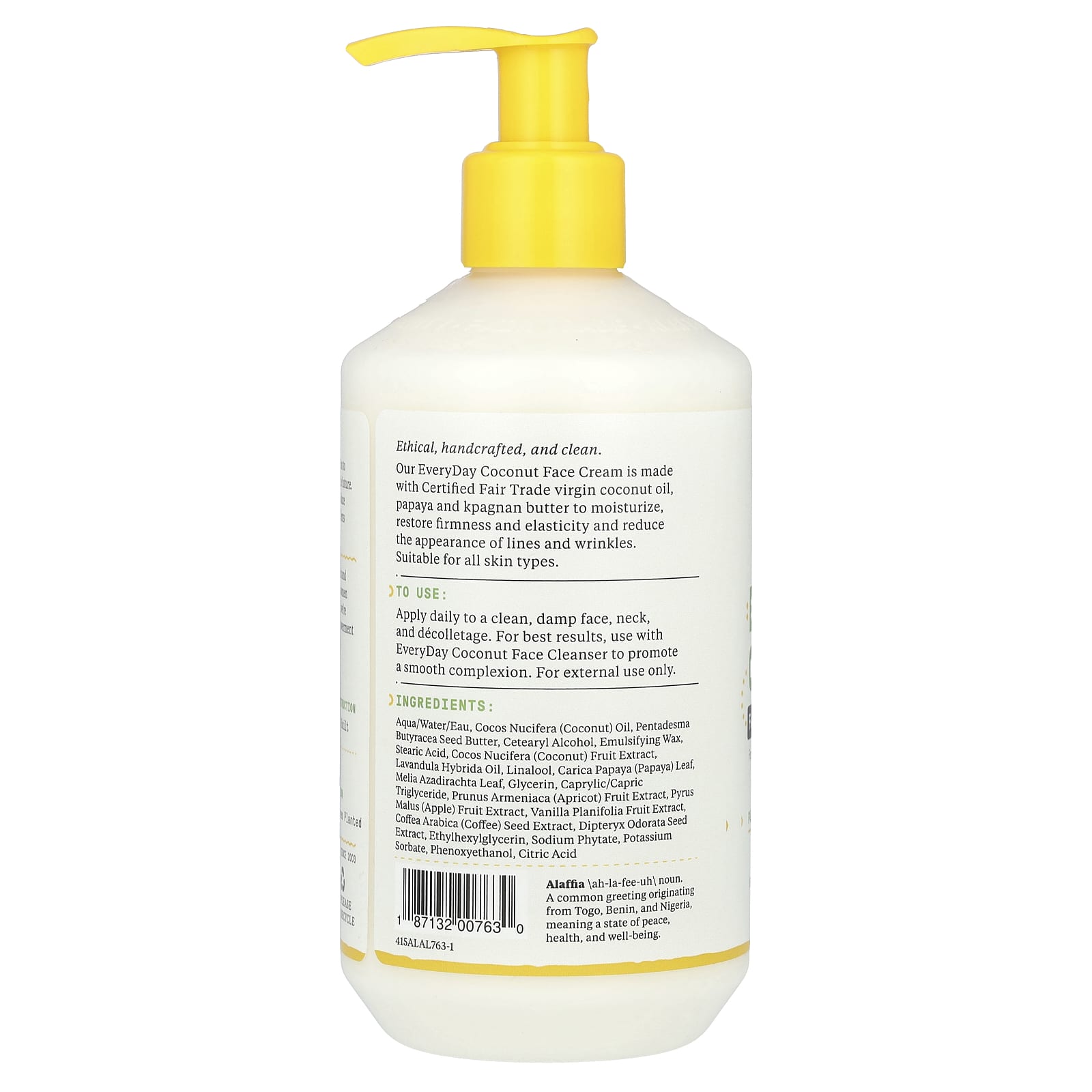 Наш кокосовый крем для лица для ежедневного использования изготовлен из сертифицированных ингредиентов, приобретенных на основе принципов справедливой торговли: кокосового масла, папайи и масла панья для увлажнения, восстановления упругости и эластичности, а также сокращения мелких и глубоких морщин. Подходит для всех типов кожи.