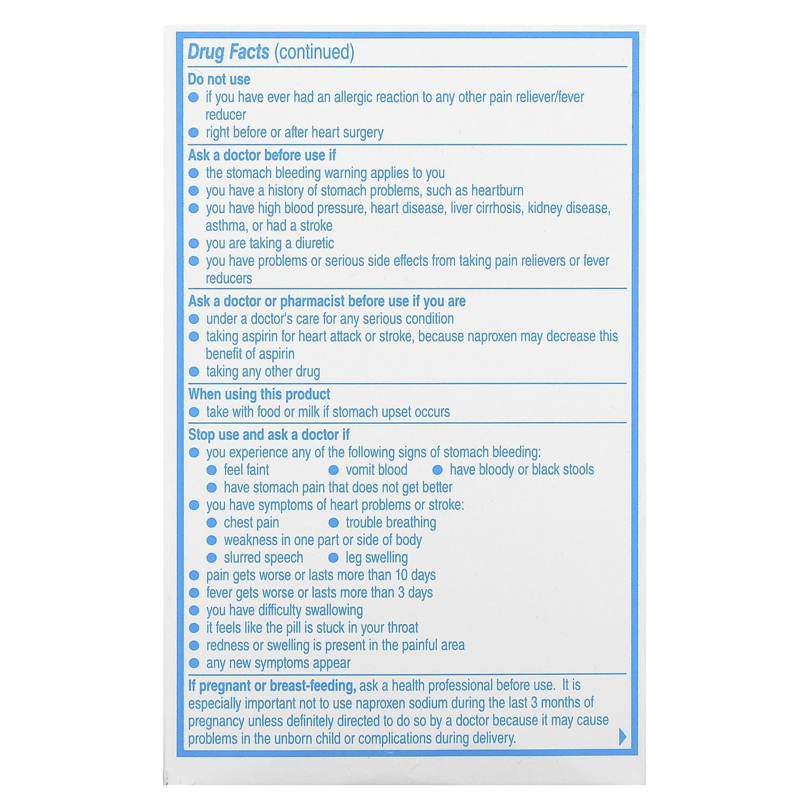 Перед применением во время беременности или кормления грудью следует проконсультироваться с медицинским работником. Особенно важно не использовать напроксен натрия в течение последних 3 месяцев беременности, если это не предписано врачом, поскольку это может вызвать проблемы у будущего ребенка или осложнения во время родов.