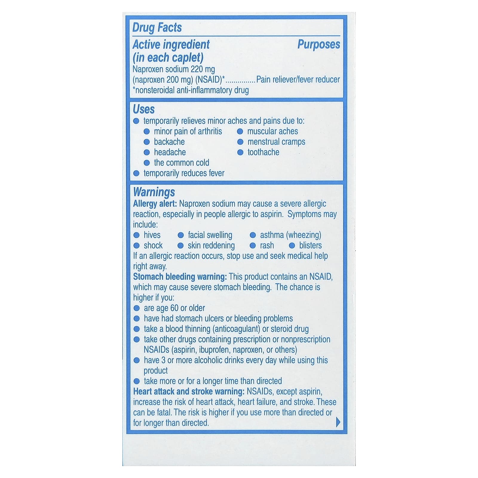Предупреждение о сердечном приступе и инсульте. НПВП, кроме аспирина, увеличивают риск сердечного приступа, сердечной недостаточности и инсульта.Это может привести к летальному исходу.Риск выше, если вы используете больше, чем указано, или дольше, чем указано.