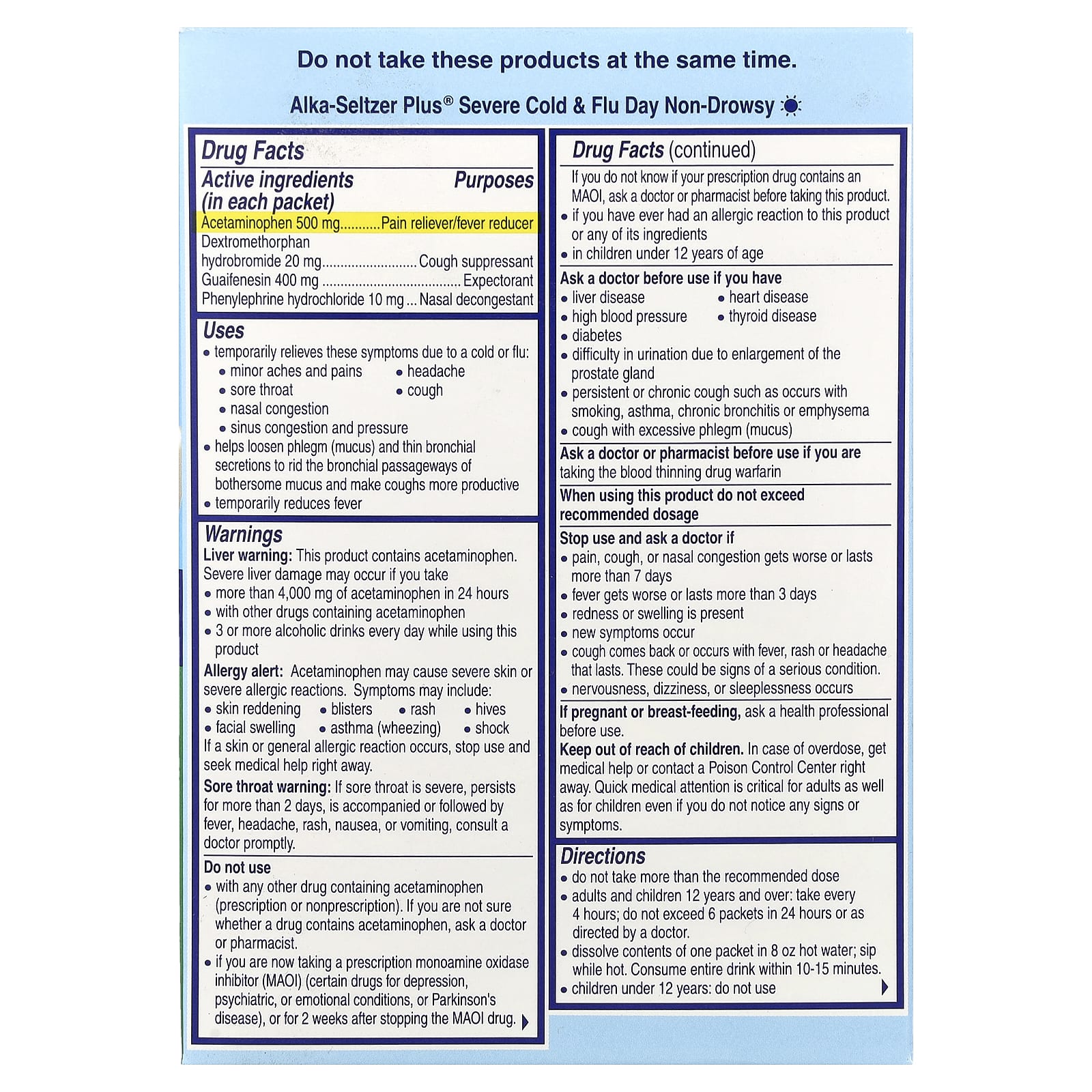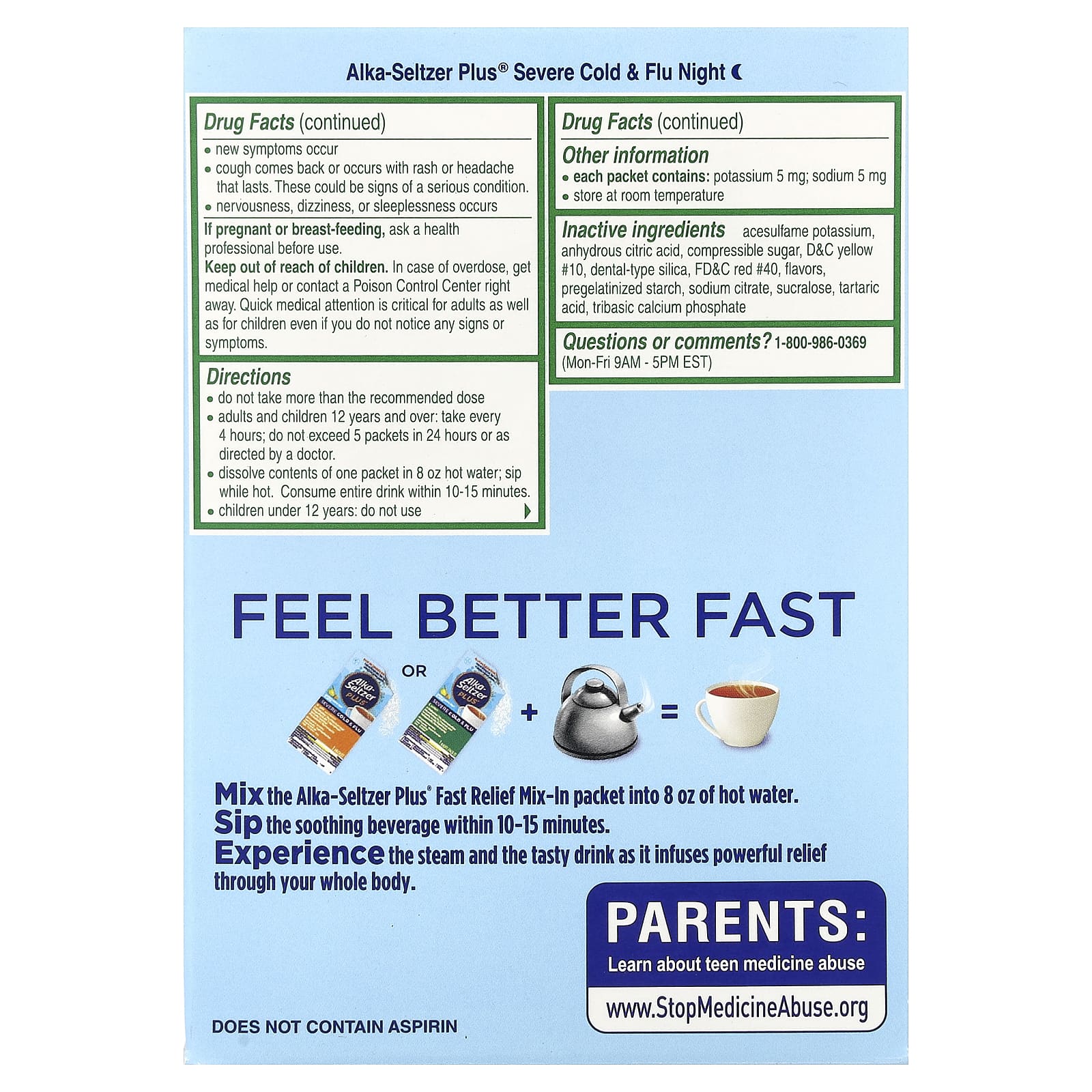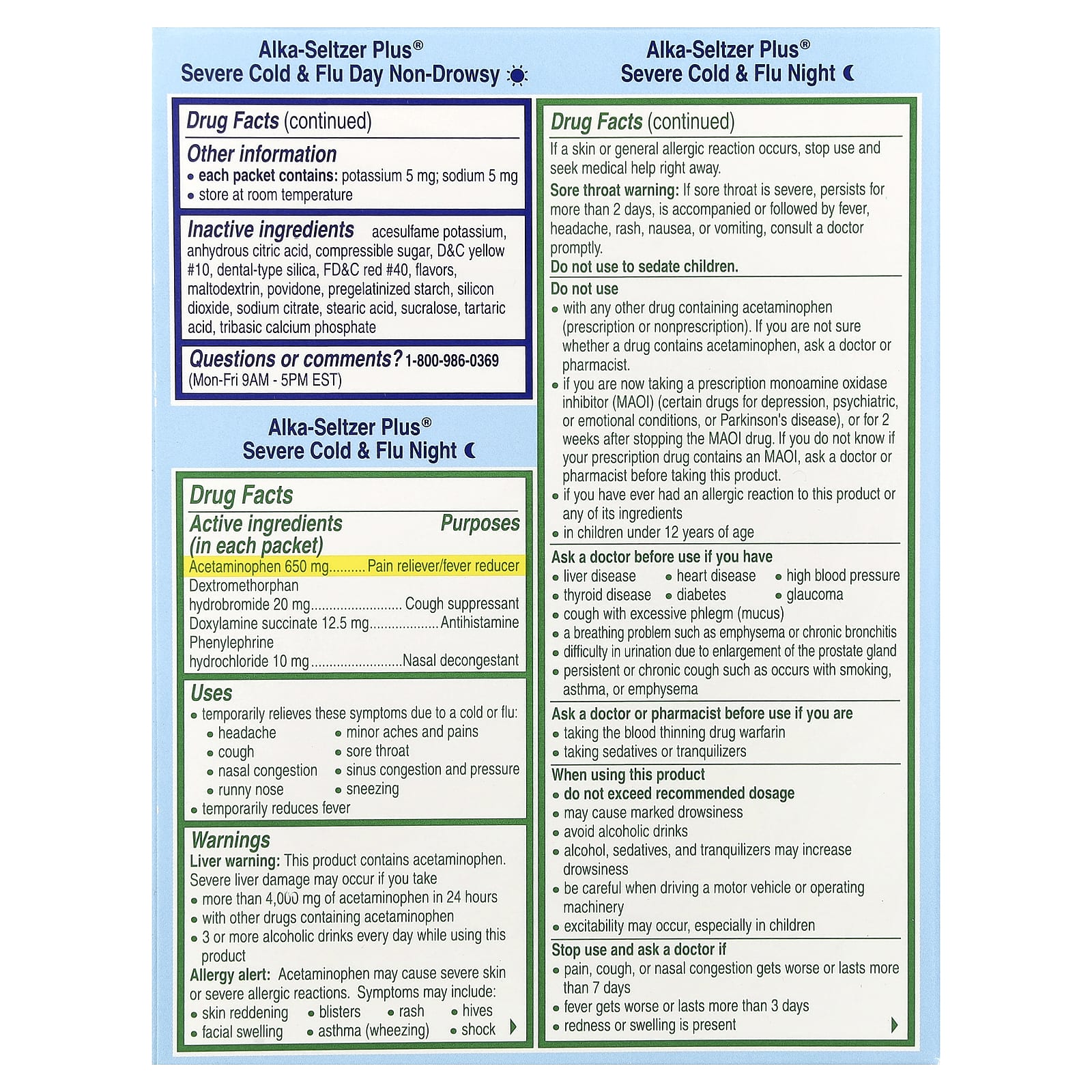 | Факты о наркотиках: Alka-Seltzer Plus® от простуды + ночь против гриппа | |
