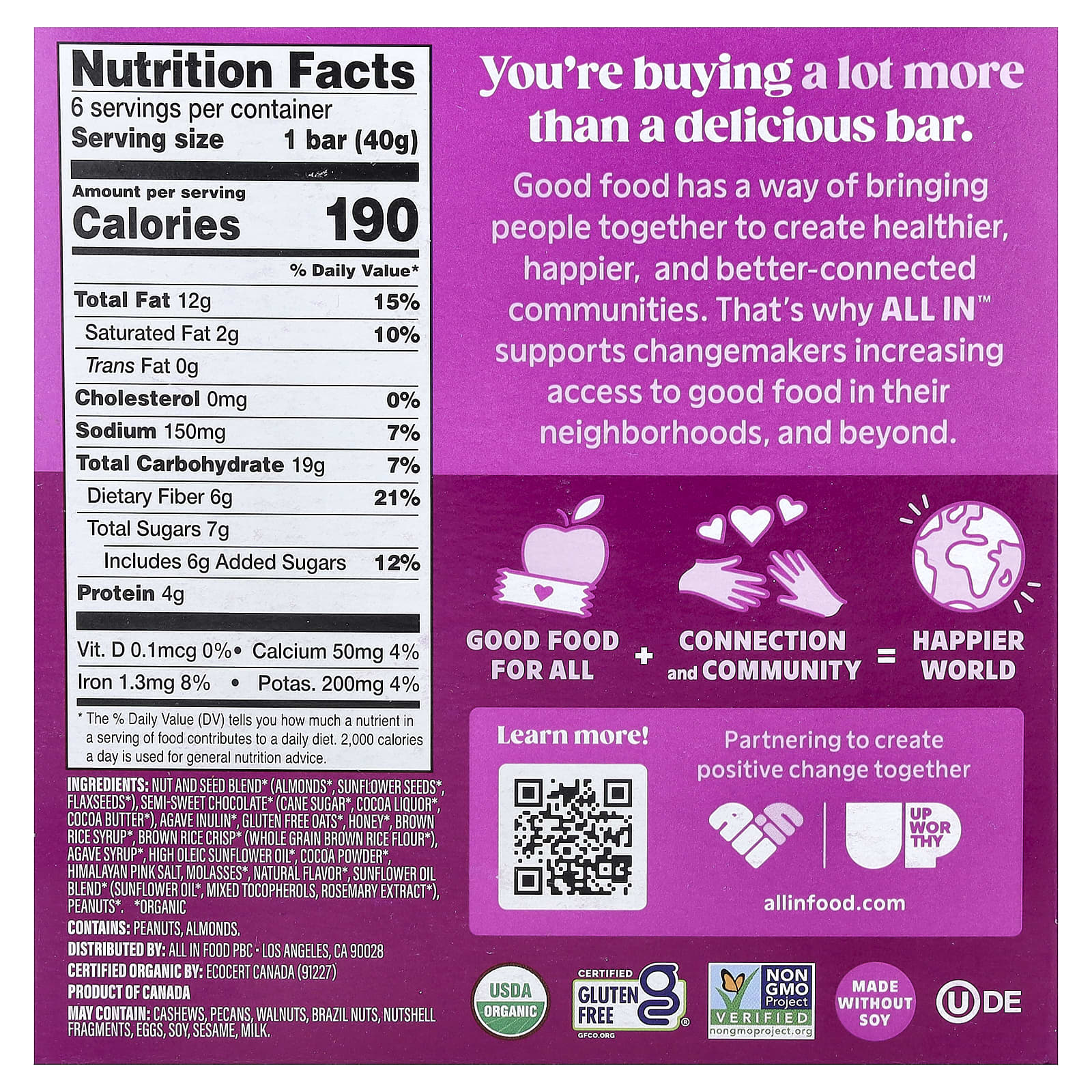 Хорошая еда объединяет людей для создания более здоровых, счастливых и партнерских сообществ. Именно поэтому компания ALL IN™ поддерживает тех, кто стремится к изменениям, улучшая доступ к вкусной еде в своем регионе и за его пределами.