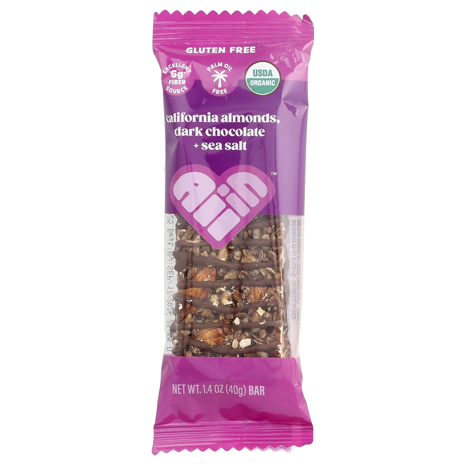 Смесь орехов и семян* (миндаль*, семена подсолнечника*, семена льна*), полусладкий шоколад* (тростниковый сахар*, тертое какао*, какао-масло*), инулин агавы*, овсянка без глютена*, мед*, сироп из бурого риса*, хрустящий рис из коричневого риса* (мука из цельнозернового коричневого риса*), сироп агавы*, высокоолеиновое подсолнечное масло*, какао-порошок*, розовая гималайская соль, патока*, натуральный ароматизатор*, смесь подсолнечного масла* (подсолнечное масло*, смешанные токоферолы, экстракт розмарина*), арахис*.