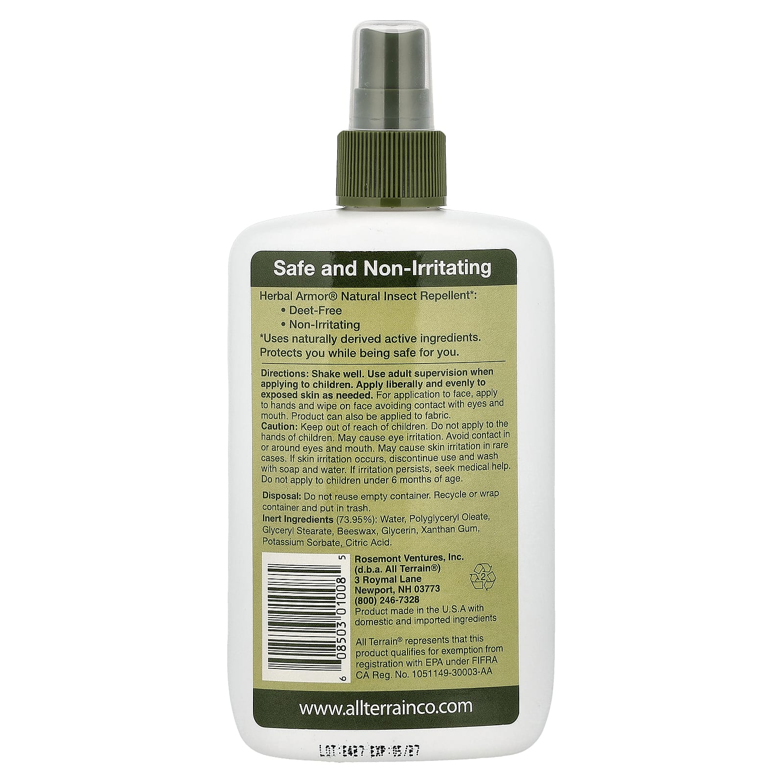 All Terrain, Herbal Armor®, натуральное средство от насекомых, спрей без ДЭА, 240 мл (8 жидк. унций)