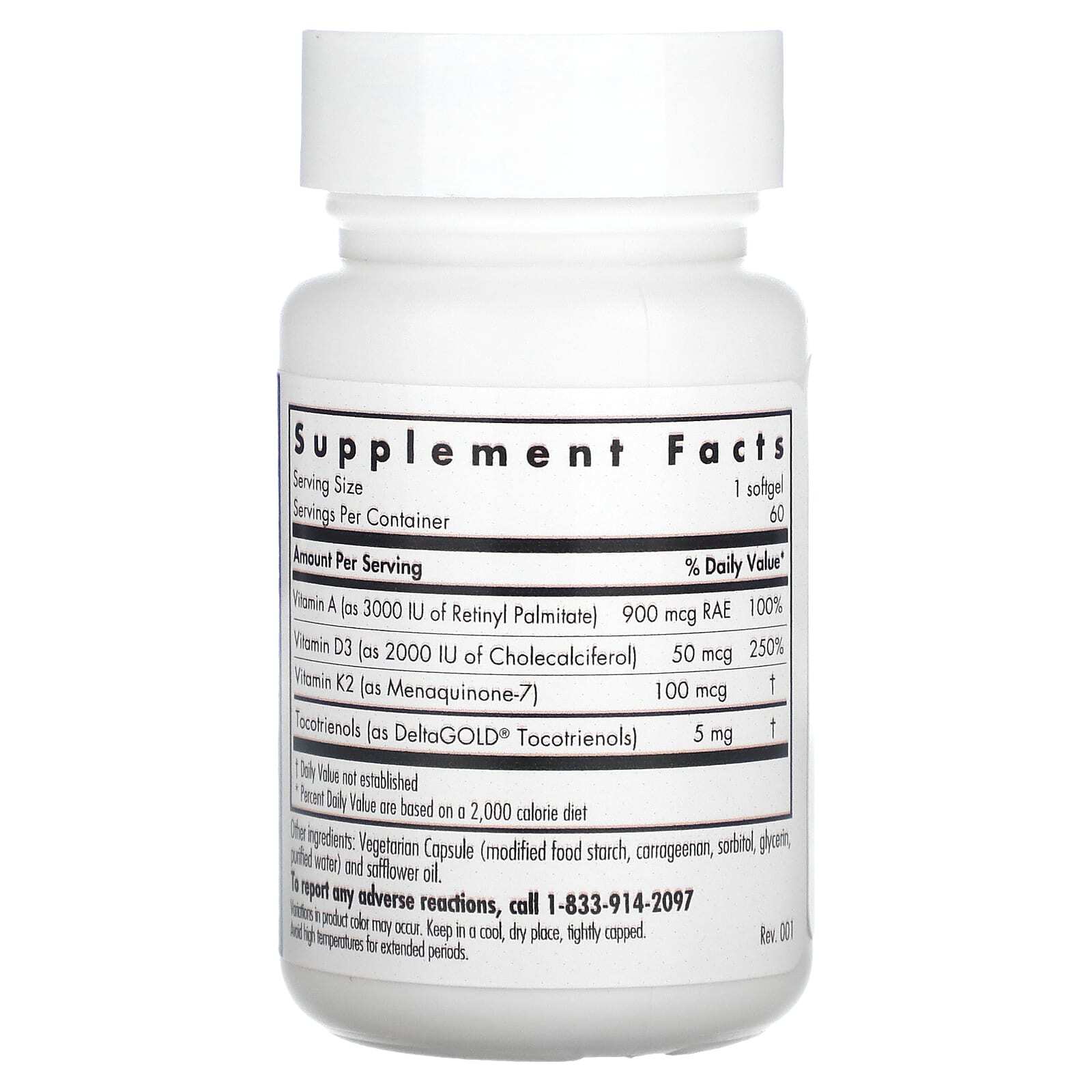 Vitamin D3 Complete разработан с учетом решающей важности баланса витамина D и витамина A. Он также содержит другие жирорастворимые витамины, K2 (менахинон-7) и токотриенолы DeltaGOLD® (часть витамина E). Комплекс с витамином D3 можно безопасно принимать ежедневно на протяжении длительного времени для большинства людей.