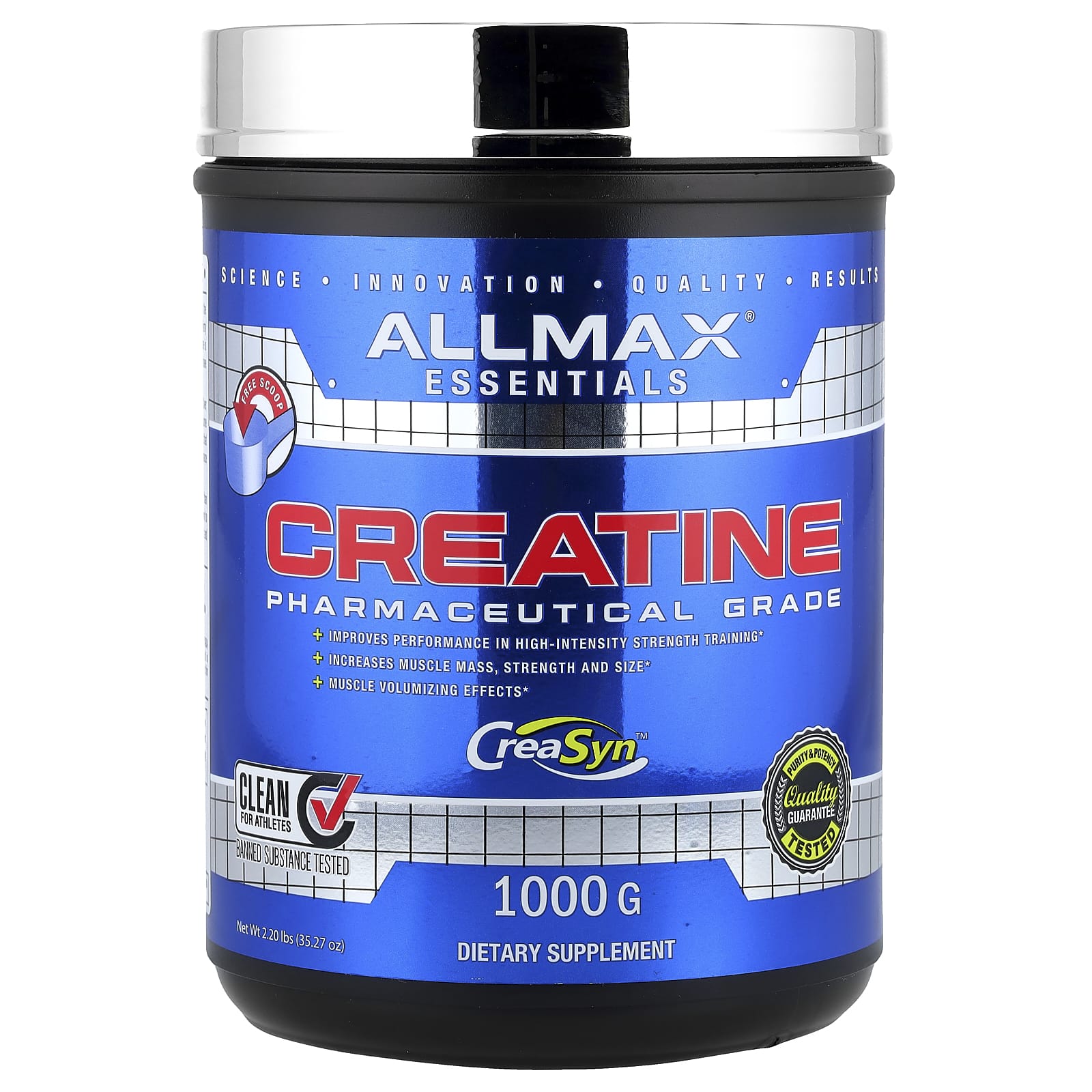 Максимальная безопасность и чистота — креатин ALLMAX фармацевтической степени чистоты CreaSyn™ отличается максимальной чистотой и безопасностью. производится в соответствии со строгими стандартами, которые соответствуют требованиям сторонней независимой проверки на наличие запрещенных веществ WADA и cGMP или превосходят их. Кроме того, наш креатин микронизирован в сверхмелкий, сыпучий порошок. Большинство порошков креатина, представленных на рынке сегодня, содержат частицы, которые на 250% больше!