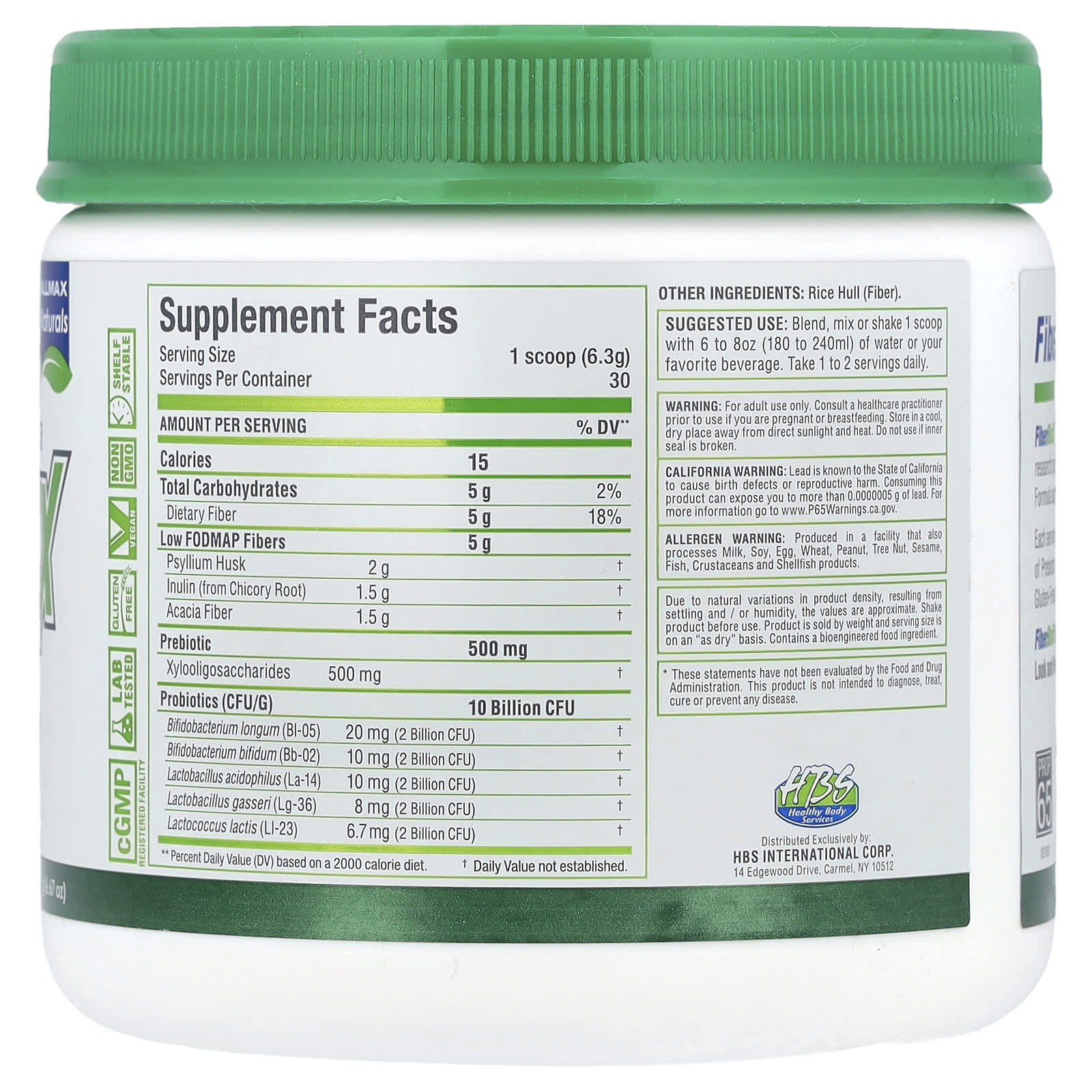 Каждая порция снабжает ваш организм 10 миллиардами КОЕ пробиотиков, 500 мг пребиотиков и 5 г клетчатки с низким содержанием FODMAP. FiberBiotiX не содержит наполнителей, глютена и ГМО, искусственных ароматизаторов, красителей и красителей.