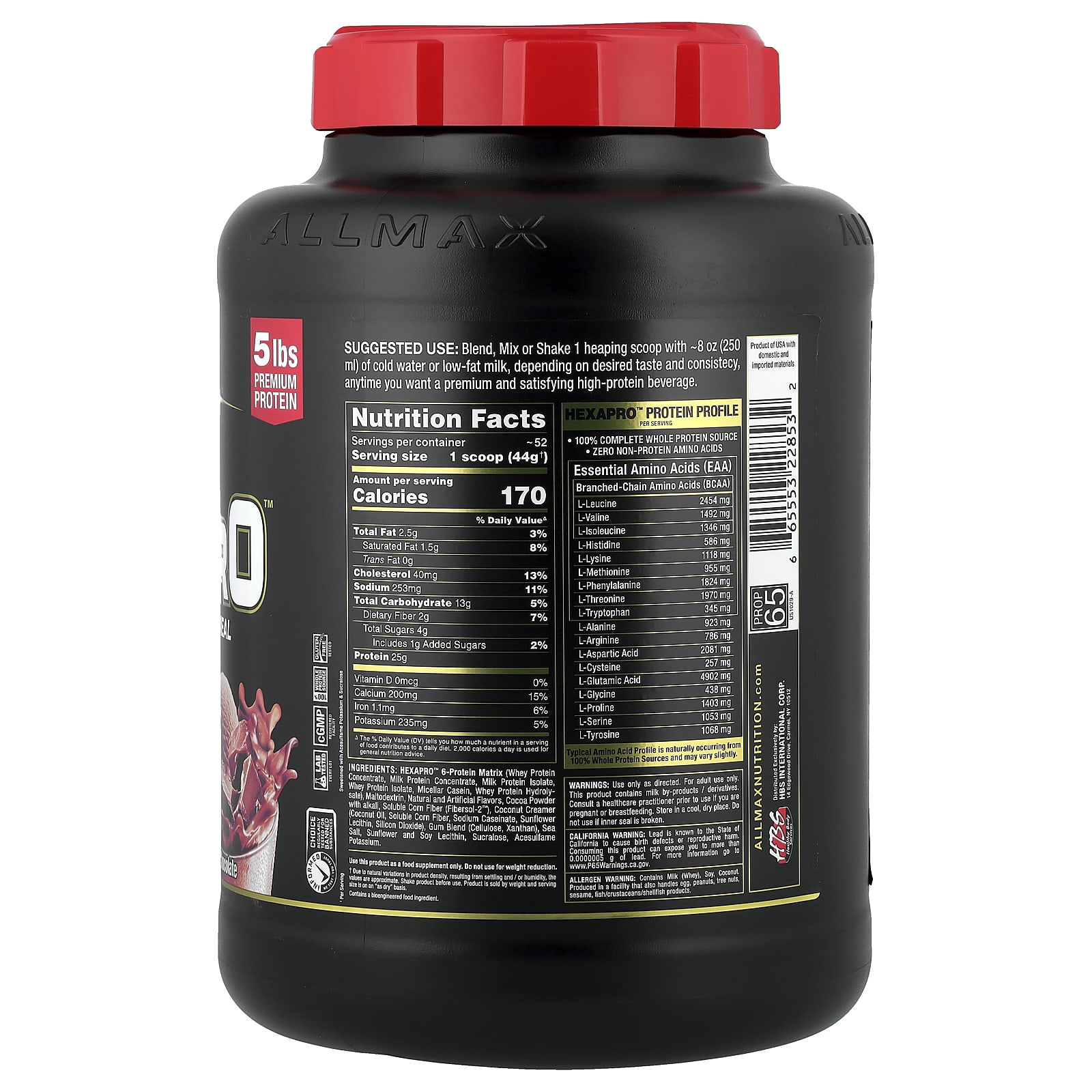 Матрица с 6 белками HEXAPRO™ (концентрат сывороточного протеина, концентрат молочного протеина, изолят молочного протеина, изолят сывороточного протеина, мицеллярный казеин, гидролизат сывороточного протеина), мальтодекстрин, натуральные и искусственные ароматизаторы, какао-порошок с щелочью, растворимая кукурузная клетчатка (Fibersol-2™), кокосовые сливки, кокосовое масло, растворимая кукурузная клетчатка, казеинат натрия, Лецитин подсолнечника, диоксид кремния), смесь камеди (целлюлоза, ксантан), морская соль, подсолнечный и соевый лецитин, Сукралоза, ацесульфам калия.