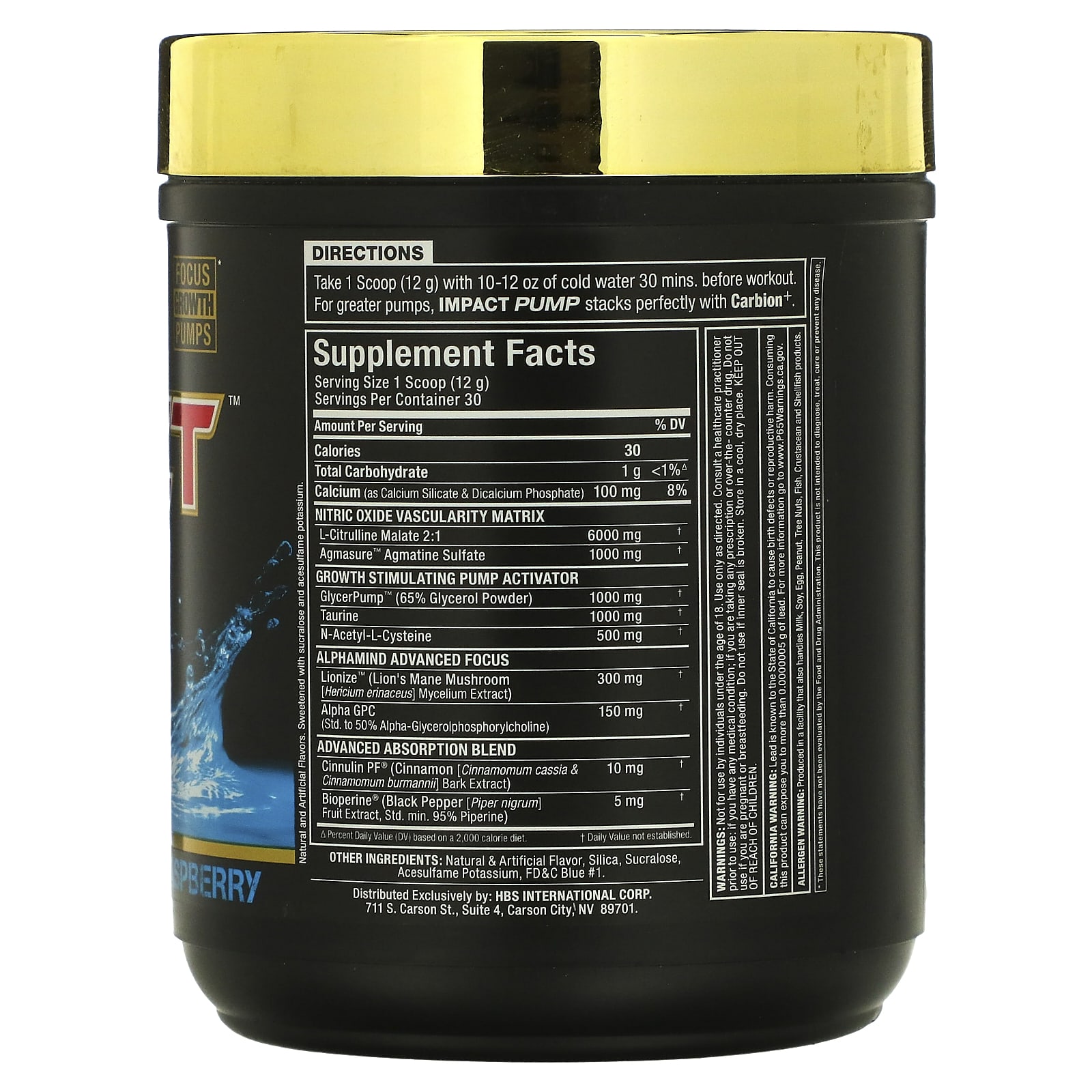 Принимайте 1 мерную ложку (12 г), запивая 10-12 унциями холодной воды 30 минут. перед тренировкой. Для более мощных насосов Impact Pump идеально сочетается с Carbion +.
