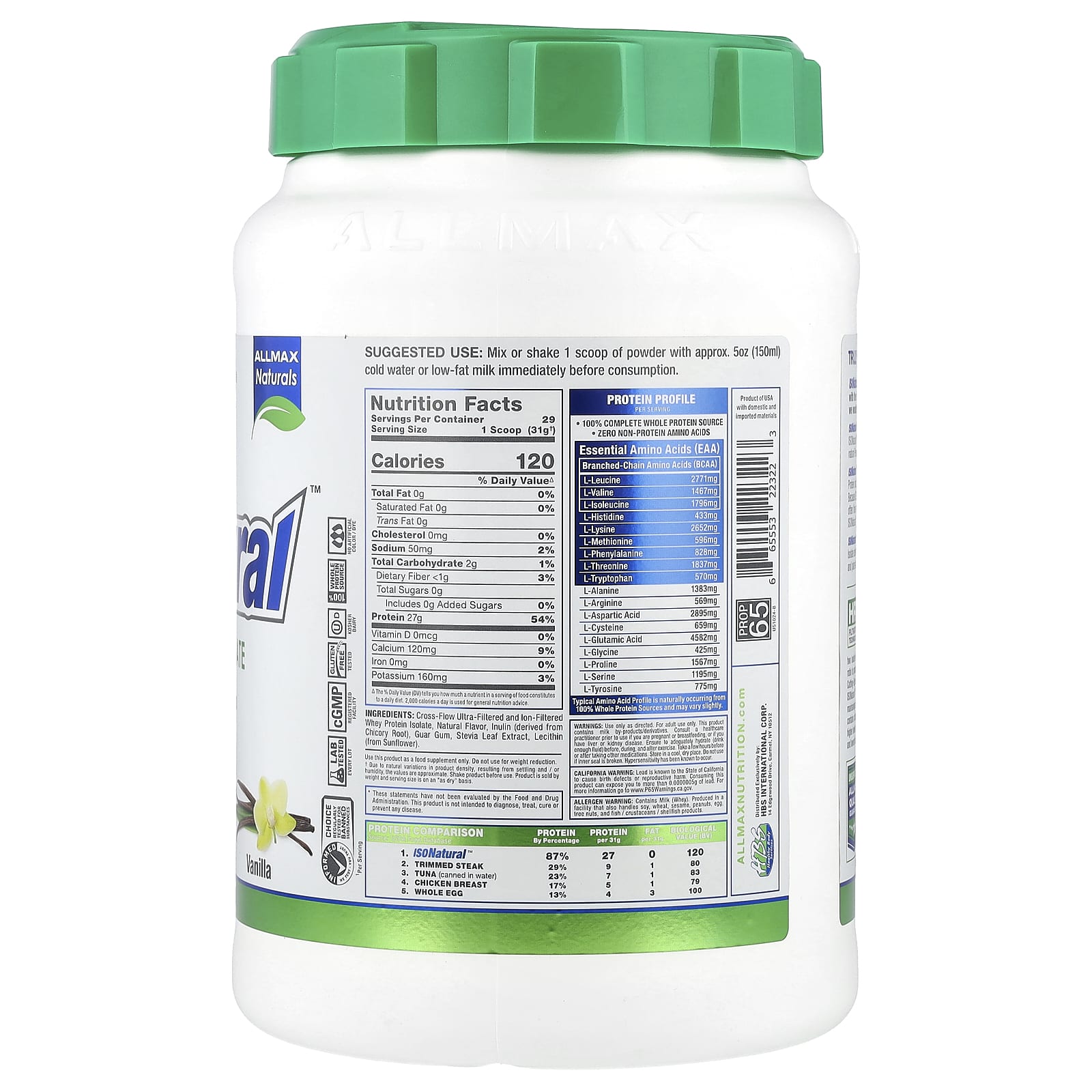 ALLMAX, ISONatural ™, изолят сывороточного протеина, ваниль, 907 г (2 фунта)