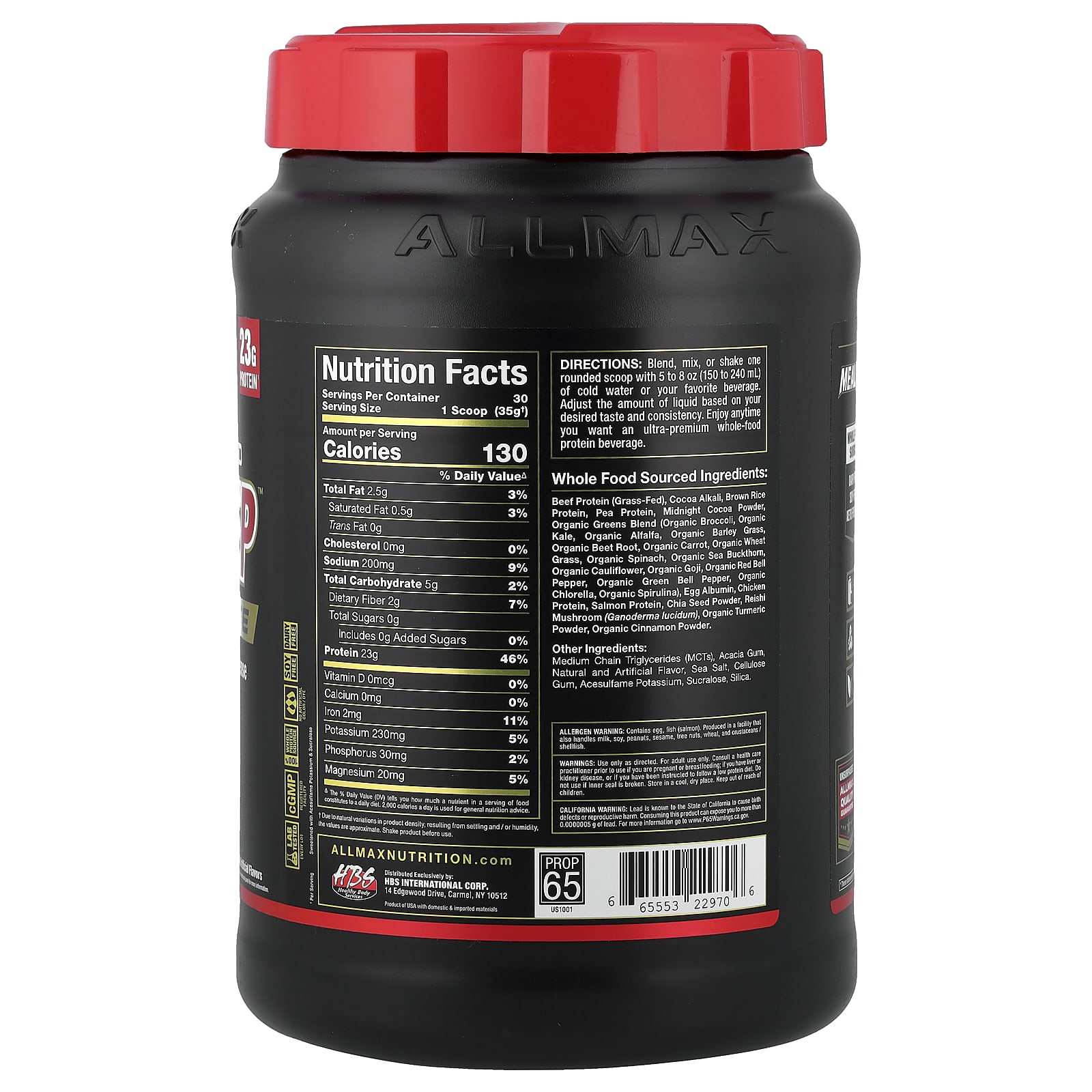 Ингредиенты из пищевых источников: Говяжий протеин (от травяного откорма), какао щелочь, протеин из коричневого риса, гороховый протеин, полуночный какао-порошок, смесь органической зелени (органическая брокколи, органическая капуста, органическая люцерна, органические ростки ячменя, органический корнеплод свеклы, органическая морковь, органические ростки пшеницы, органический шпинат, органическая облепиха, органической цветной капусты, органические ягоды годжи, органический красный болгарский перец, органический зеленый болгарский перец, органическая хлорелла, органическая спирулина), яичный альбумин, куриный белок, белок лосося, порошок из семян чиа, гриб рейши (Ganoderma lucidum), порошок из органической куркумы, органическая молотая корица.